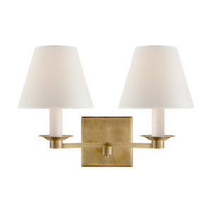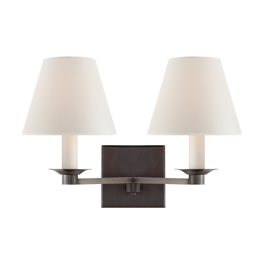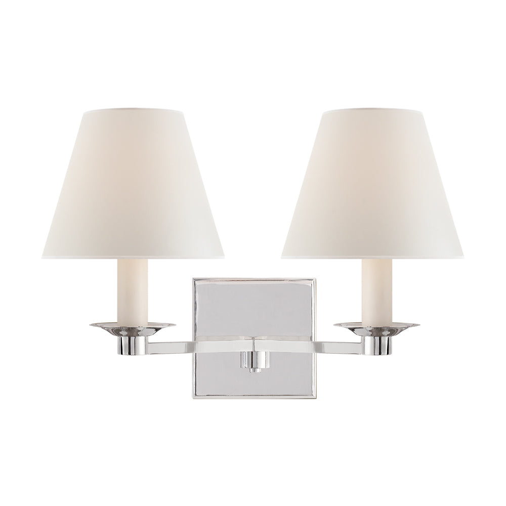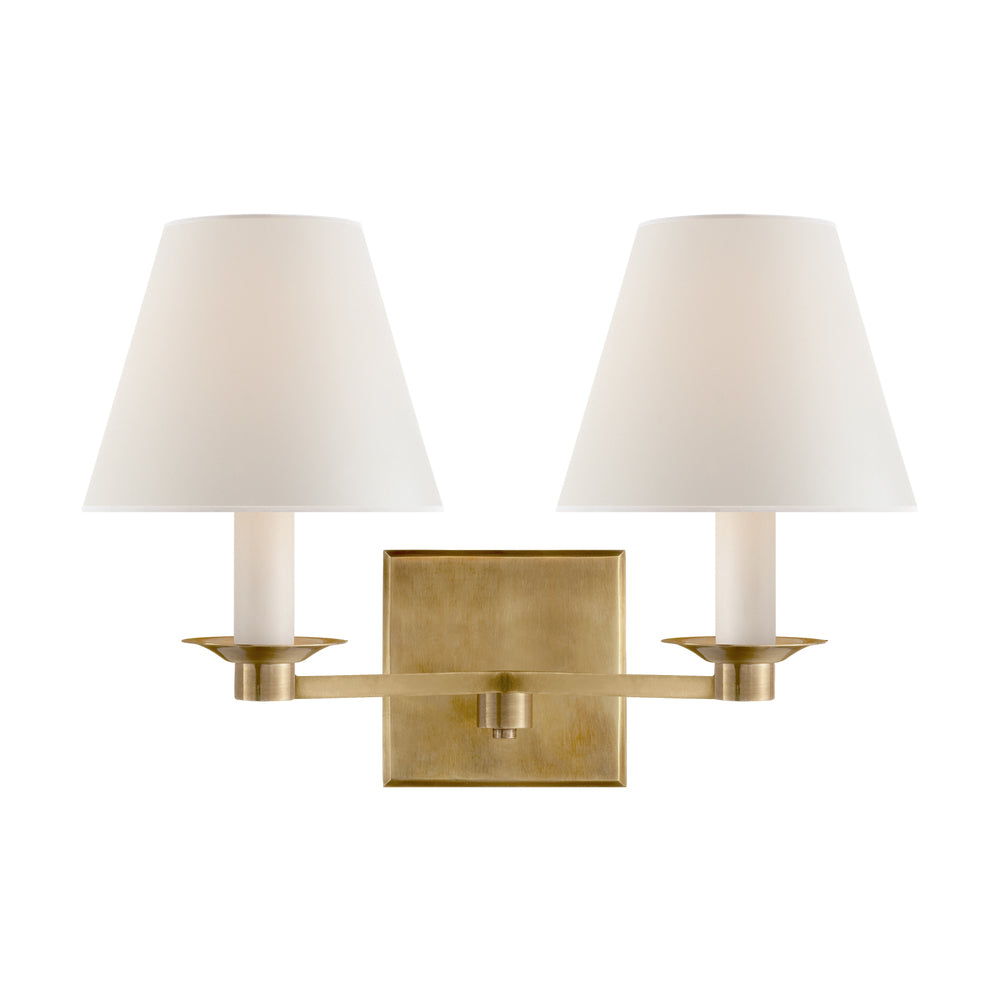 The Evans Double Wall Lamp strikes a harmonious balance between tradition and modernity. With its dual-arm silhouette and square backplate, it evokes timeless elegance while remaining refreshingly understated. The tapered fabric shades provide soft, ambient lighting, ideal for flanking mirrors, headboards, or hallway vignettes. Available in brass, bronze, or polished nickel finishes, it complements a range of interiors from vintage charm to sleek contemporary. A study in symmetry and simplicity.