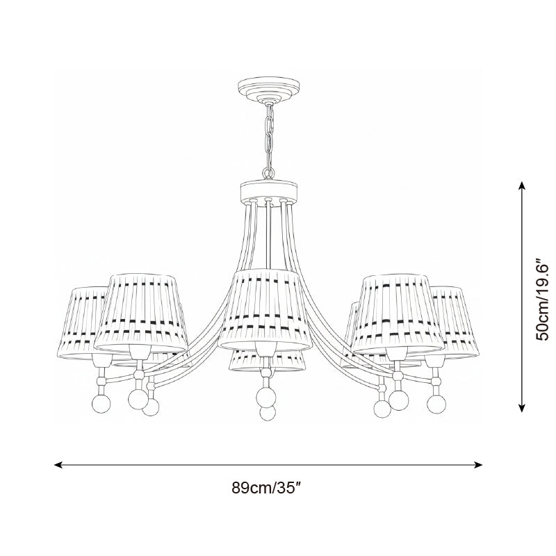 The Loomcrest Chandelier blends artisanal texture with modern elegance, featuring woven shades that bring a warm, tactile softness to its sculptural metal frame. Sweeping, symmetrical arms create a refined silhouette, while the woven pattern casts a gentle, atmospheric glow that feels both crafted and contemporary. Thoughtfully balanced with dark accent spheres for subtle contrast, Loomcrest becomes a statement of quiet sophistication—perfect for dining rooms, living spaces, or any interior that appreciates design with character and soul.