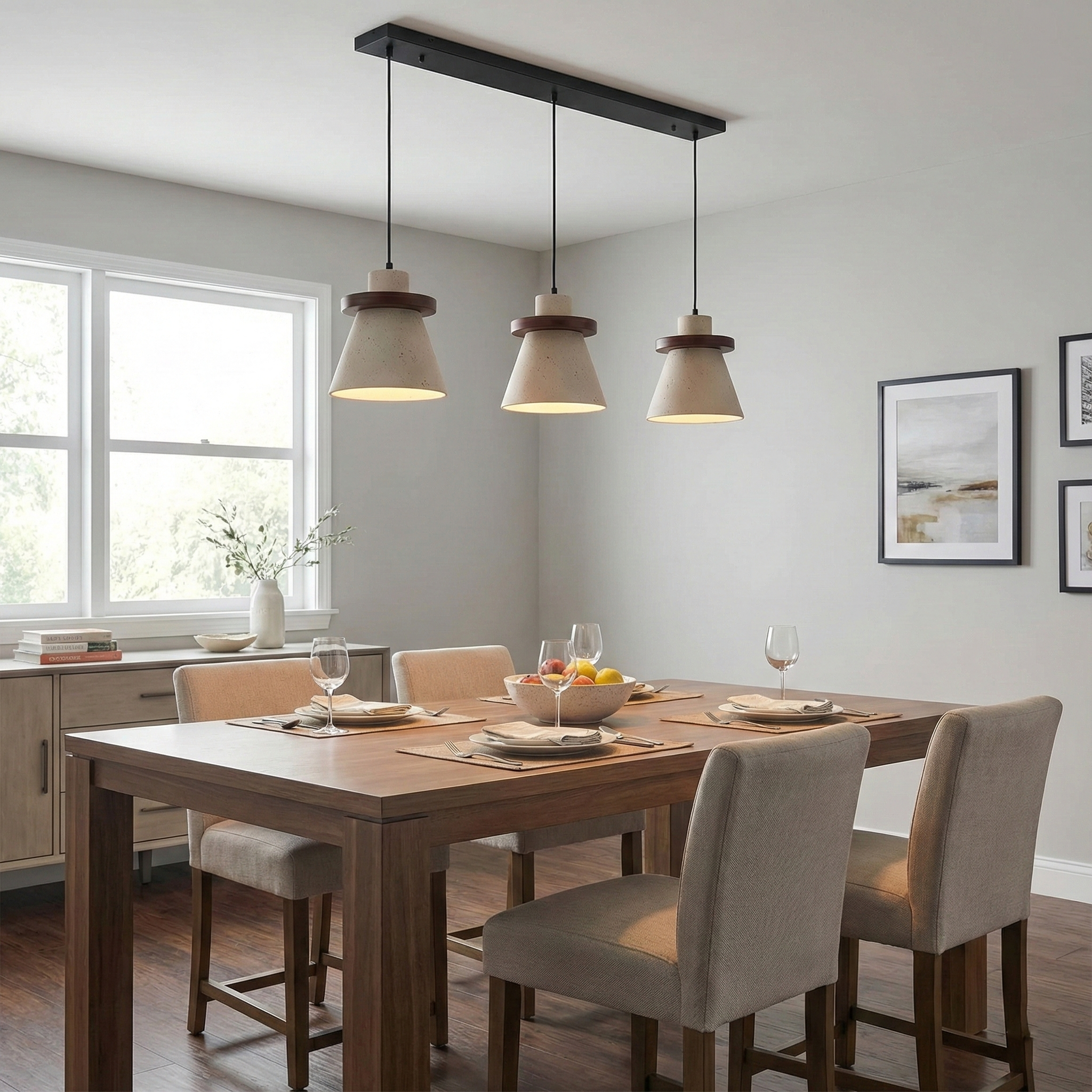 The Gallery Pendant Lamp channels a refined architectural spirit with its clean geometry and rich materiality. Handcrafted from beige travertine stone, the conical silhouette is punctuated by a circular walnut accent—an interplay of weight and warmth that elevates its sculptural presence. Suspended with minimalist hardware, this piece casts a focused glow, ideal for intimate dining spaces, artful kitchen islands, or curated reading corners.