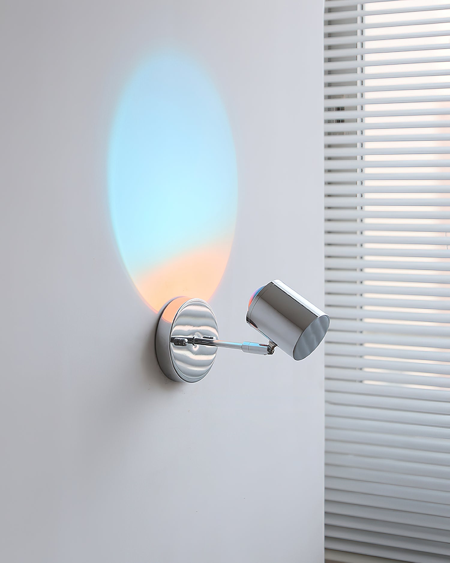 The Iridescent Beam Wall Lamp transforms light into a living artwork. With its sleek metallic body and adjustable head, it projects a mesmerizing gradient of color—soft blues melting into warm ambers—evoking the serenity of dawn or dusk. More than illumination, it’s an ambient experience that adds a poetic, futuristic glow to any wall. Perfect for bedrooms, studios, or minimalist interiors, it turns ordinary moments into atmospheric beauty.