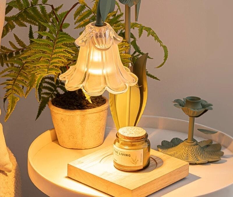 Diese Lampe hat die Form einer zarten, blühenden Blume und wurde entwickelt, um Ihre Lieblingskerzen sanft zu erwärmen und ihren Duft freizusetzen, ohne dass eine offene Flamme erforderlich ist. Der botanisch inspirierte Stiel und der Blumenlampenschirm schaffen eine ruhige, naturähnliche Atmosphäre, während der Holzsockel einen Hauch von rustikalem Charme verleiht. Die Sareya Candle Warmer Lamp ist ideal, um die Atmosphäre in jedem Raum zu verbessern. Sie ist sowohl ein stilvolles Dekorationsstück als auch eine sichere Möglichkeit, beruhigende Düfte zu genießen.