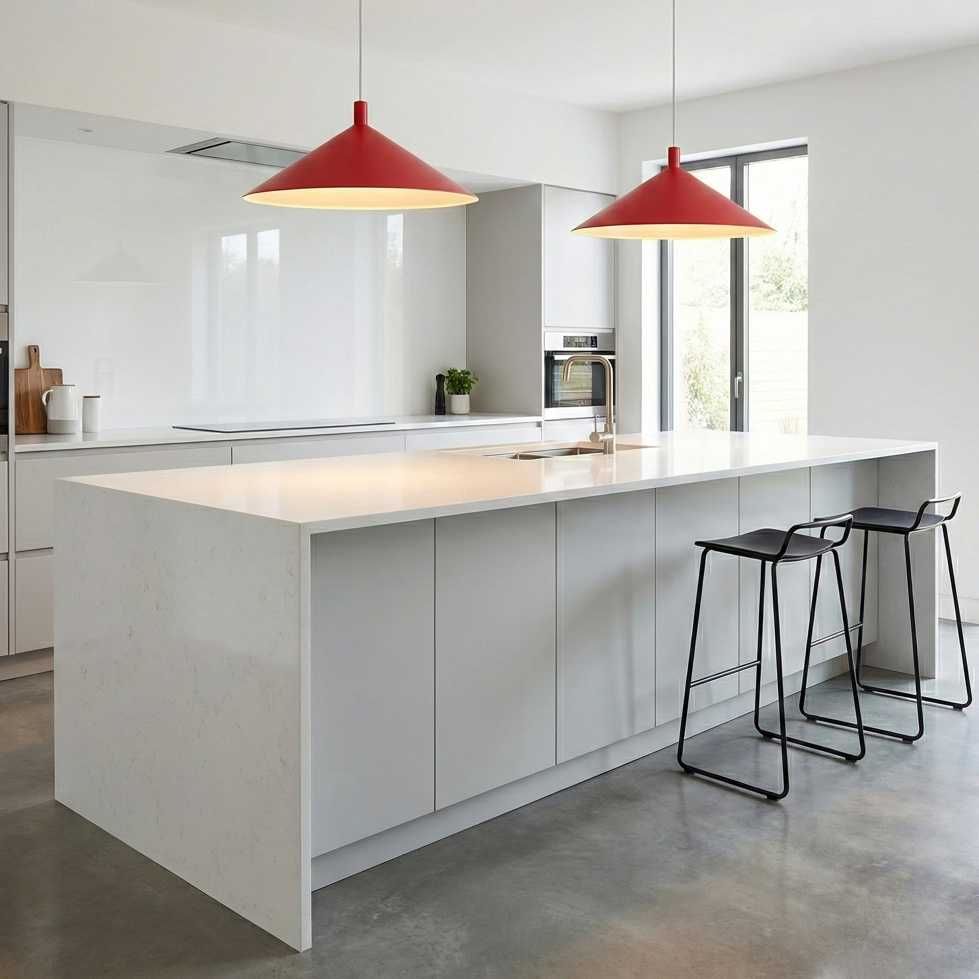 The Ruvio Pendant Lamp celebrates the essence of minimalism with its sharp geometric silhouette and bold color palette. Defined by its perfectly tapered conical shade, it offers a clean and striking presence that works as both a functional light source and a sculptural accent. The Ruvio Lamp brings a modern clarity to dining spaces, kitchens, and creative interiors.