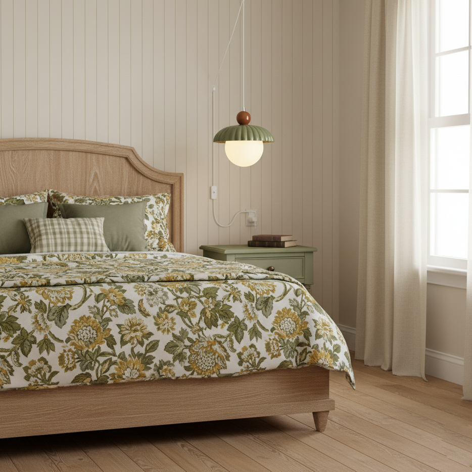 Illuminate your space with a touch of retro charm! This stunning Docos pendant light features a sleek, modern design with a green pleated shade and a warm, glowing orb at its center. The rich brown accent at the top adds a vintage flair, making it a perfect statement piece for both contemporary and traditional interiors.