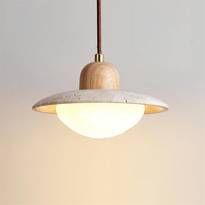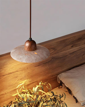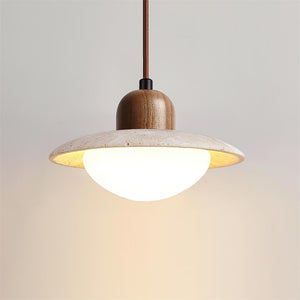 The Brim Pendant Lamp blends sculptural form with understated elegance, offering a warm, grounded presence in any space. Its travertine-inspired brim, paired with a rounded opal glass diffuser, evokes the silhouette of a setting sun—serene, balanced, and timeless. Accented by a smoothly finished wooden crown, this lamp introduces natural texture and soft illumination ideal for dining areas, cozy corners, or kitchens seeking organic charm.