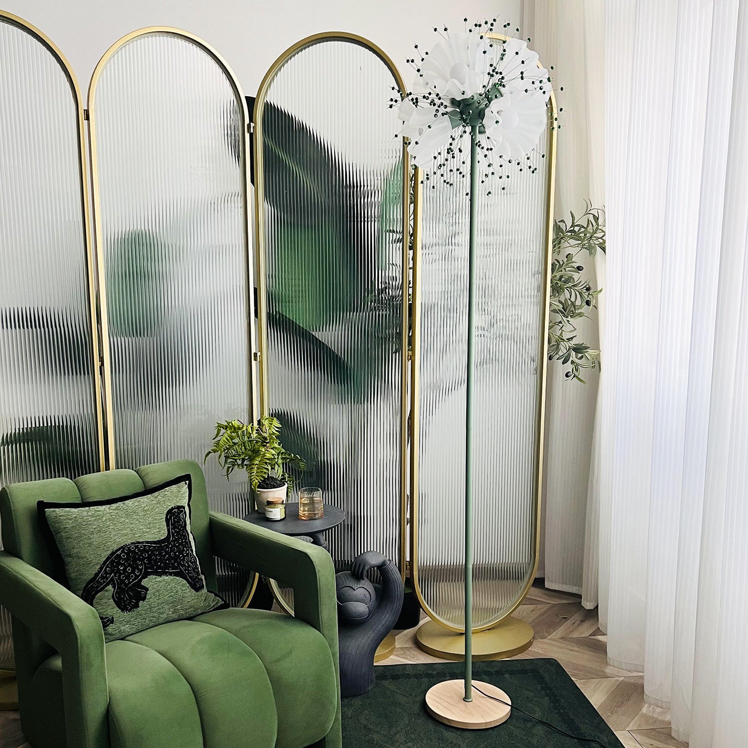 Delicate yet daring, the Celonia Floor Lamp evokes the ethereal beauty of a blooming wildflower caught in mid-burst. With a slender green stem rising into an explosion of translucent petals and tiny dotted filaments, it feels as if light itself has taken on a floral form. More than a source of illumination, Celonia is a sculptural statement—perfect for adding a whimsical elegance to any corner, from modern living spaces to poetic reading nooks.