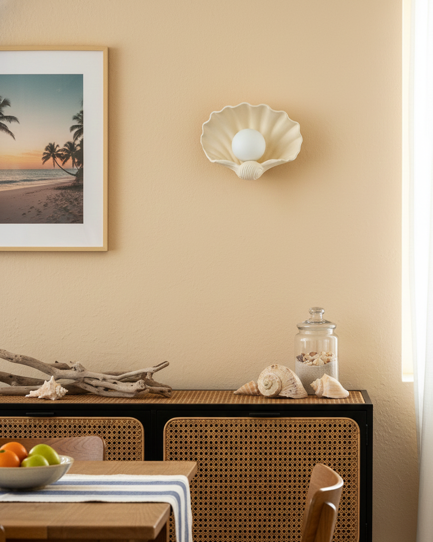 A tribute to the quiet elegance of the sea, the Marisca Wall Lamp captures the allure of a seashell cradling a glowing pearl. Its sculptural ceramic form—smooth, rippled, and softly flared—evokes the beauty of natural ocean treasures, while the matte finish and rounded lines bring a calming, organic touch to any space. Whether styled in a hallway, bedroom, or bathroom, Marisca adds more than just light—it brings a sense of serenity and quiet coastal poetry to your home.