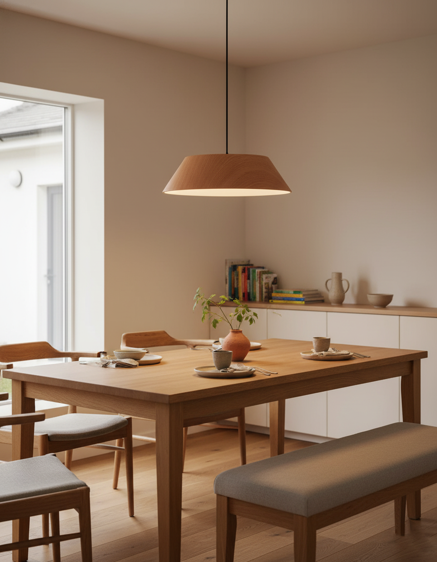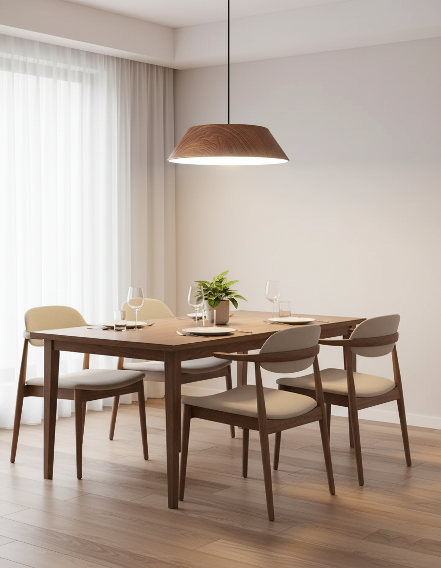 Die Tekio-Pendelleuchte, eine exquisite Mischung aus Funktion und Kunst, ist der Inbegriff innovativen Lichtdesigns. Sie wurde mit einer sorgfältigen Wassertransferdrucktechnik hergestellt und weist auf ihrer Oberfläche ein reiches Walnussholzmuster auf, das einen Hauch natürlicher Eleganz vermittelt. Die alternativen Optionen für die Holztextur aus weißem Wachs sorgen für ein leichteres, zeitgenössischeres Gefühl, perfekt für moderne Innenräume. Diese Lampe ist ein Beweis für einen neu interpretierten Retro-Stil und verleiht jedem Essbereich ein kreatives und anspruchsvolles Ambiente.