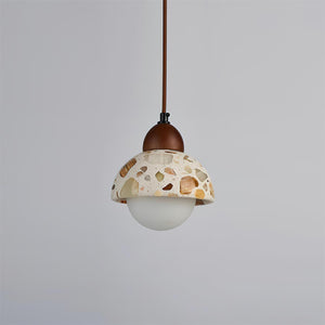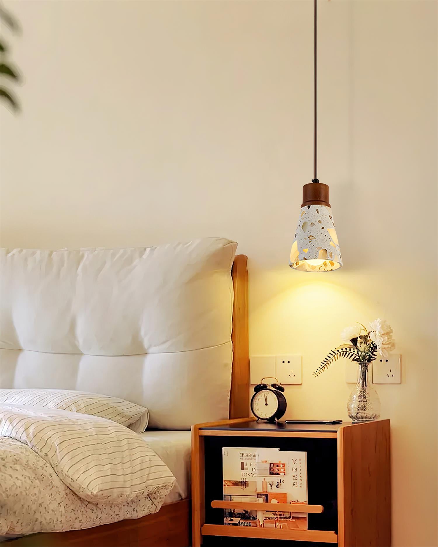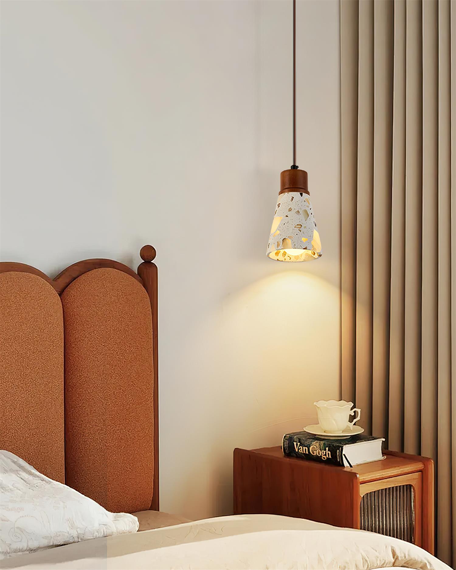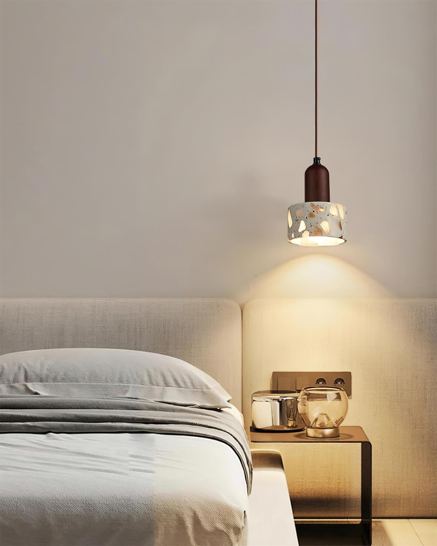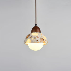 The Tressa Pendant Lamp collection blends sculptural form with earthy character, featuring terrazzo-style stone inlays and smooth wooden accents. Each variation highlights a unique silhouette—whether conical, dome-like, or cylindrical—creating a striking yet natural focal point. Ideal for dining corners or cozy reading nooks, these pendant lamps cast a warm, inviting glow that enhances any space with organic elegance and artisanal charm.