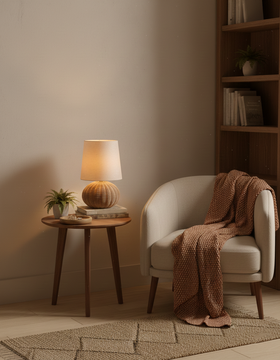 Introducing the Braxton Rattan Table Lamp, a perfect blend of natural elegance and modern craftsmanship. Featuring a handwoven rattan base paired with a simple, neutral-toned lampshade, this lamp brings a relaxed, organic feel to any interior. The soft, ambient light enhances cozy atmospheres, making it ideal for bedrooms, living rooms, or reading nooks. Its timeless design complements both contemporary and rustic decor, offering a touch of nature and warmth to your space.