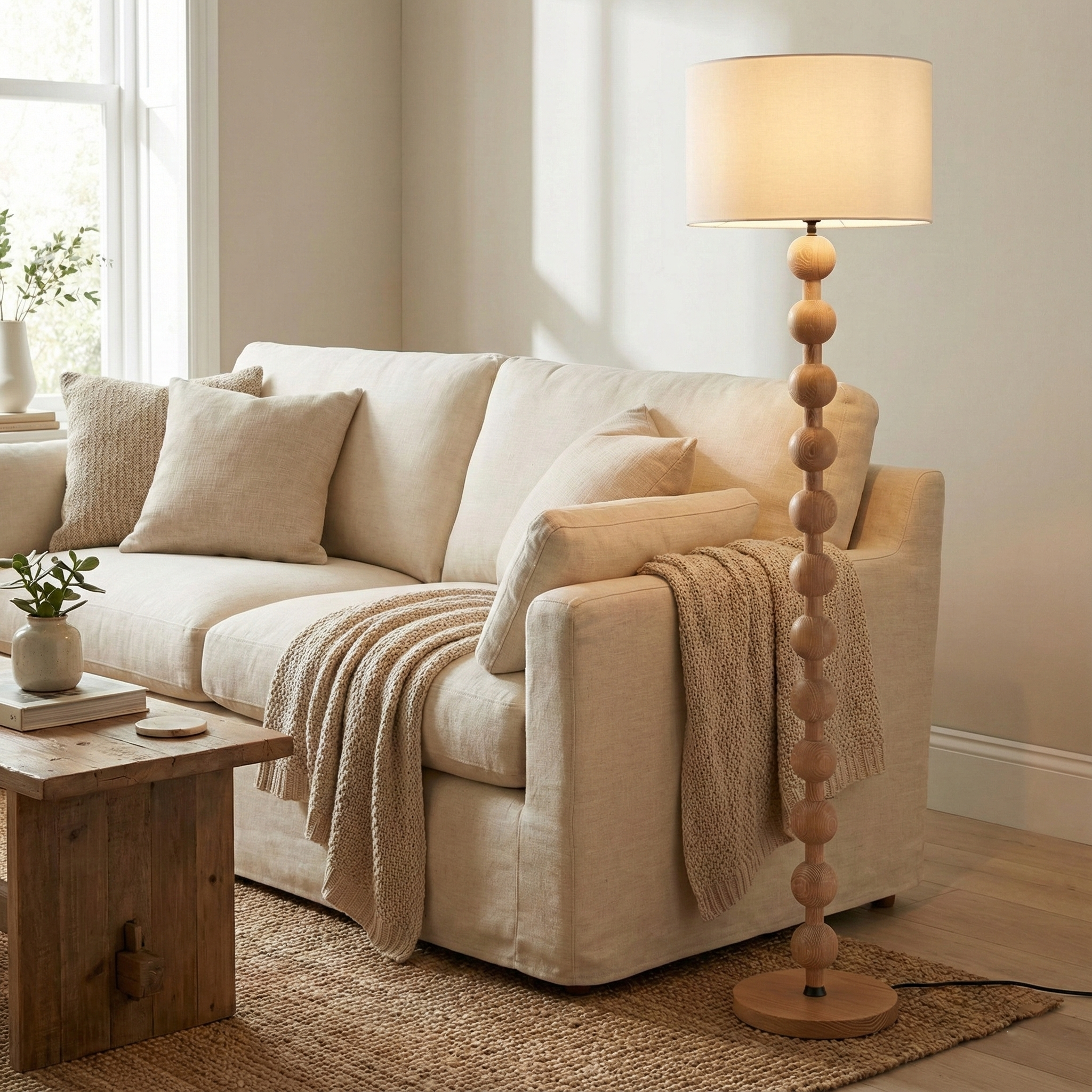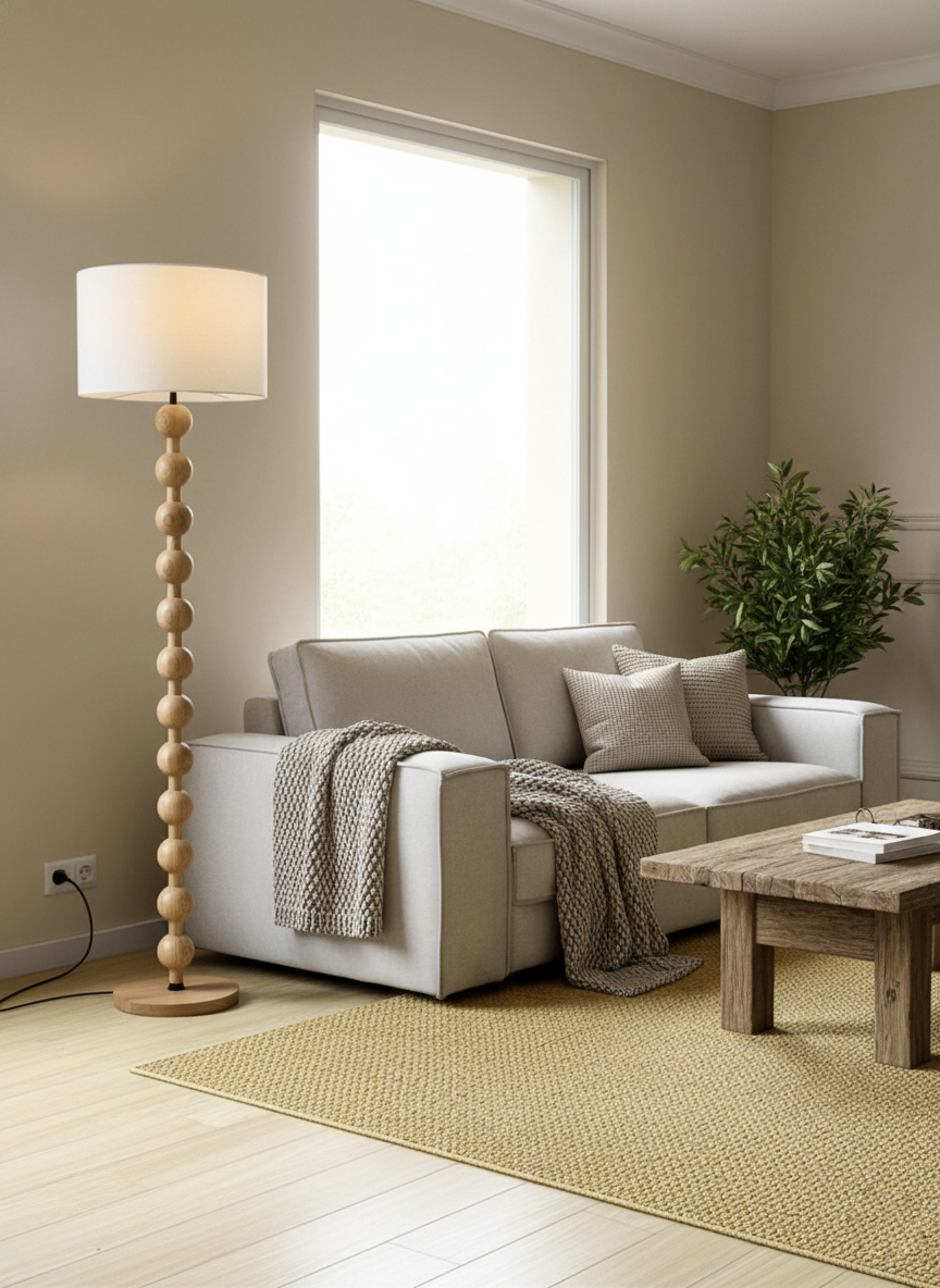 La lámpara de pie Hugo Barbell es una pieza que combina el encanto natural de la madera con la elegante sofisticación del diseño moderno. Su estructura única, inspirada en una barra, presenta una serie de esferas de madera, cada una cuidadosamente diseñada para crear una armonía vertical que atrae la atención hacia arriba. Coronada con una pantalla blanca y nítida, la lámpara de pie Hugo Barbell proporciona una luz cálida y difusa que es perfecta para crear un ambiente acogedor en cualquier habitación.