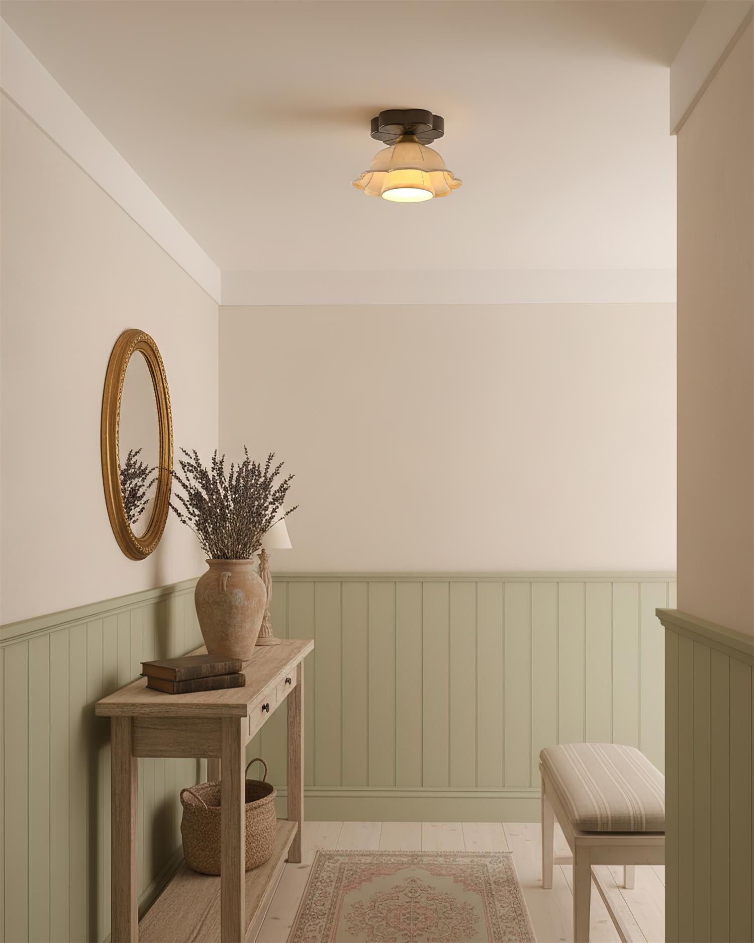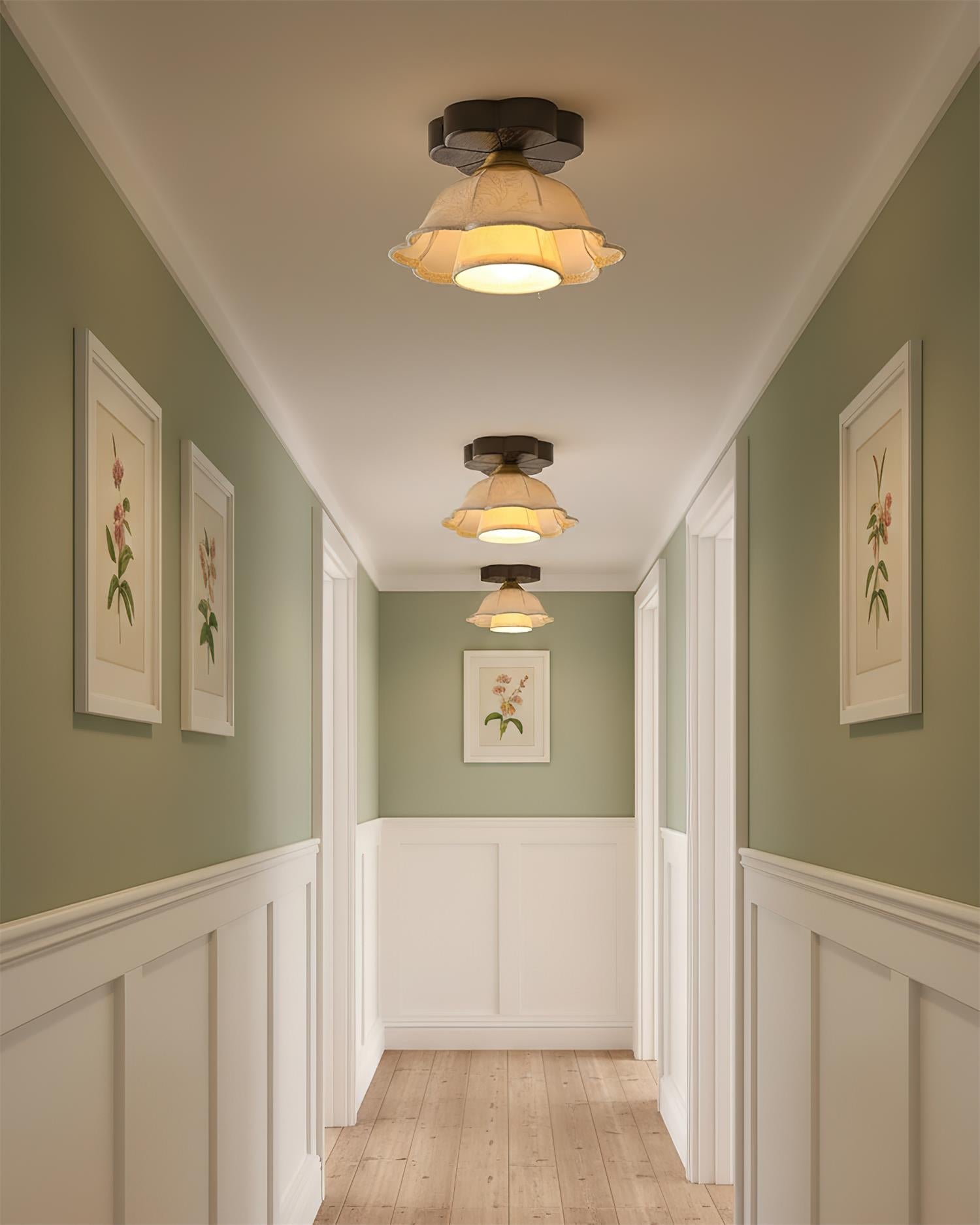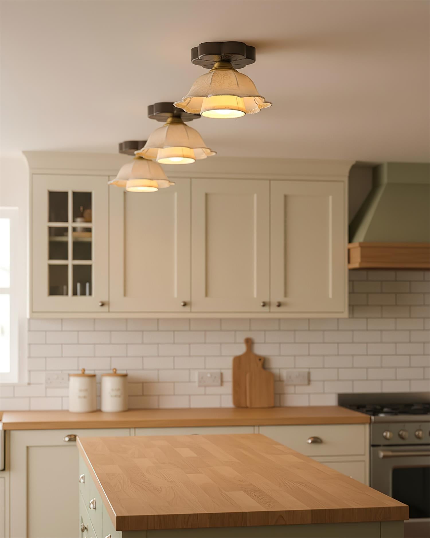 The Garcia Flower Ceiling Light from Docos exudes vintage elegance with a touch of romantic charm. Featuring a delicate, flower-shaped Fabric shade with intricate floral patterns and scalloped edges, it creates a soft, ambient glow that enhances any room’s atmosphere. The Gold accents and wooden base add warmth and timeless sophistication, making it a perfect choice for bedrooms, dining areas, or living spaces.