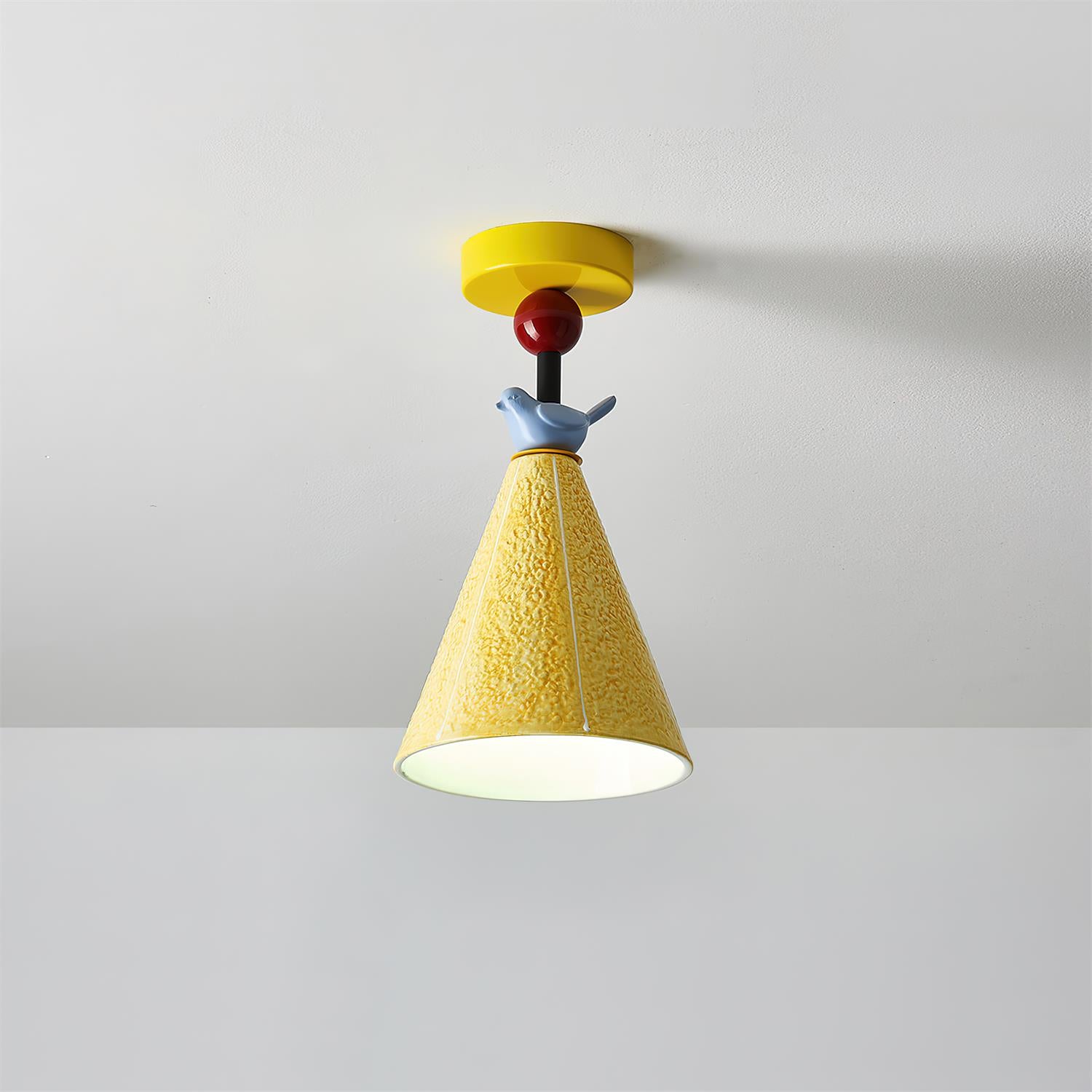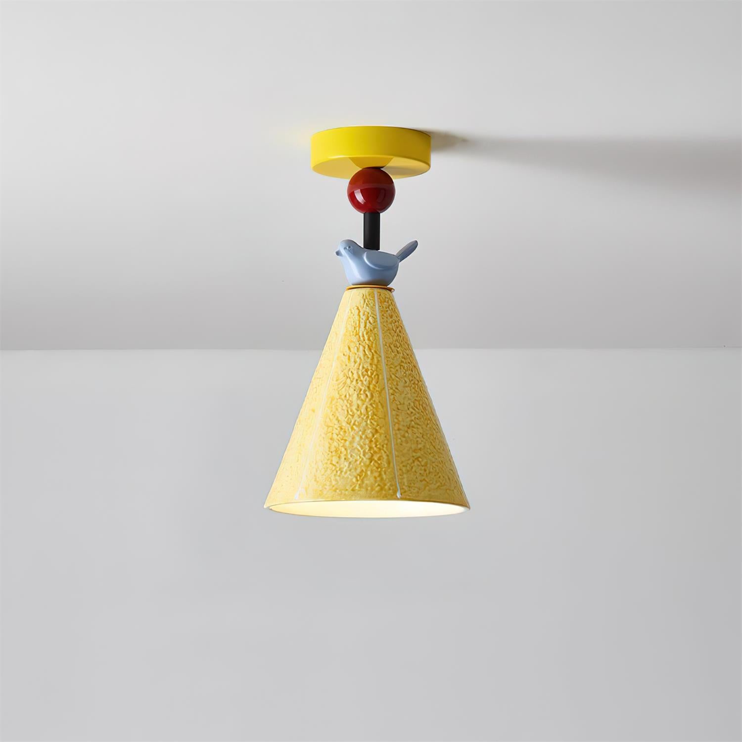 The Tweetie Ceiling Lamp is a playful fusion of color and character, designed to bring both light and delight into any room. Its textured yellow conical shade diffuses a soft glow, while the charming blue bird perched on top adds a whimsical, decorative touch. Perfect for children’s rooms, creative studios, or any space in need of a cheerful accent, this lamp transforms everyday lighting into a joyful design statement.