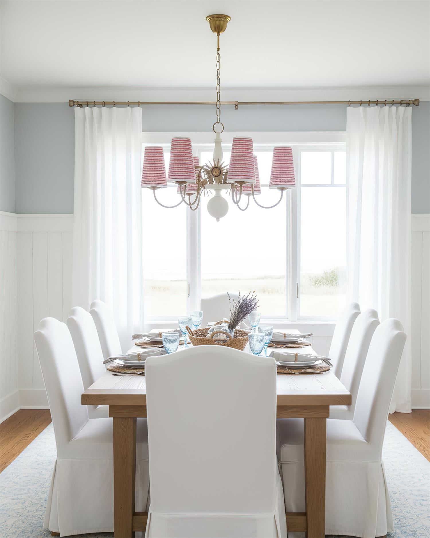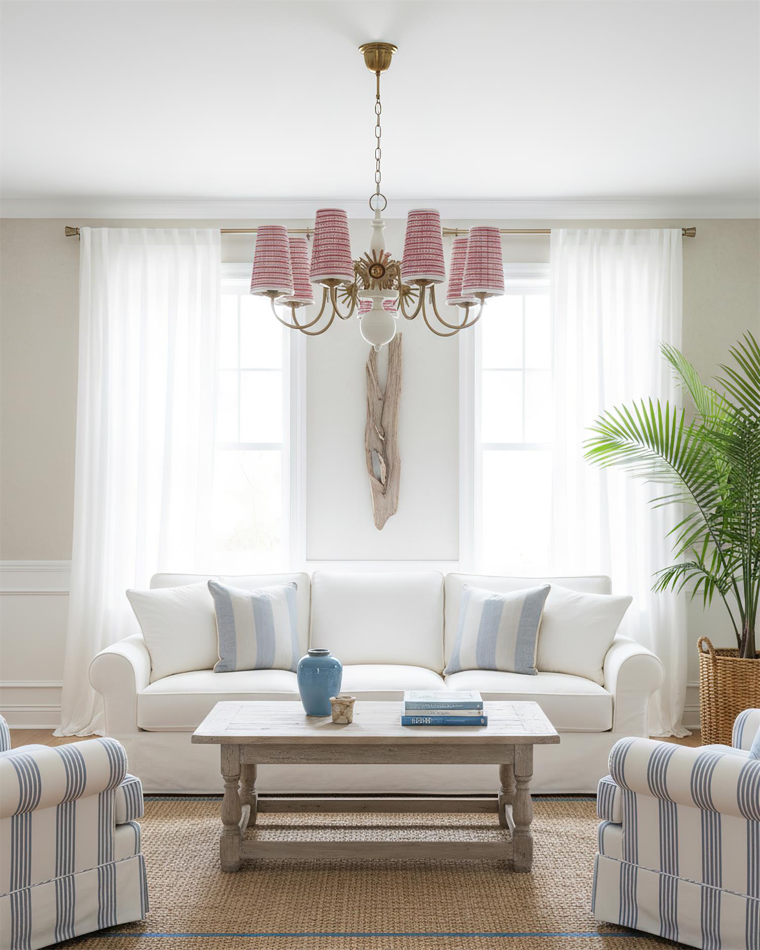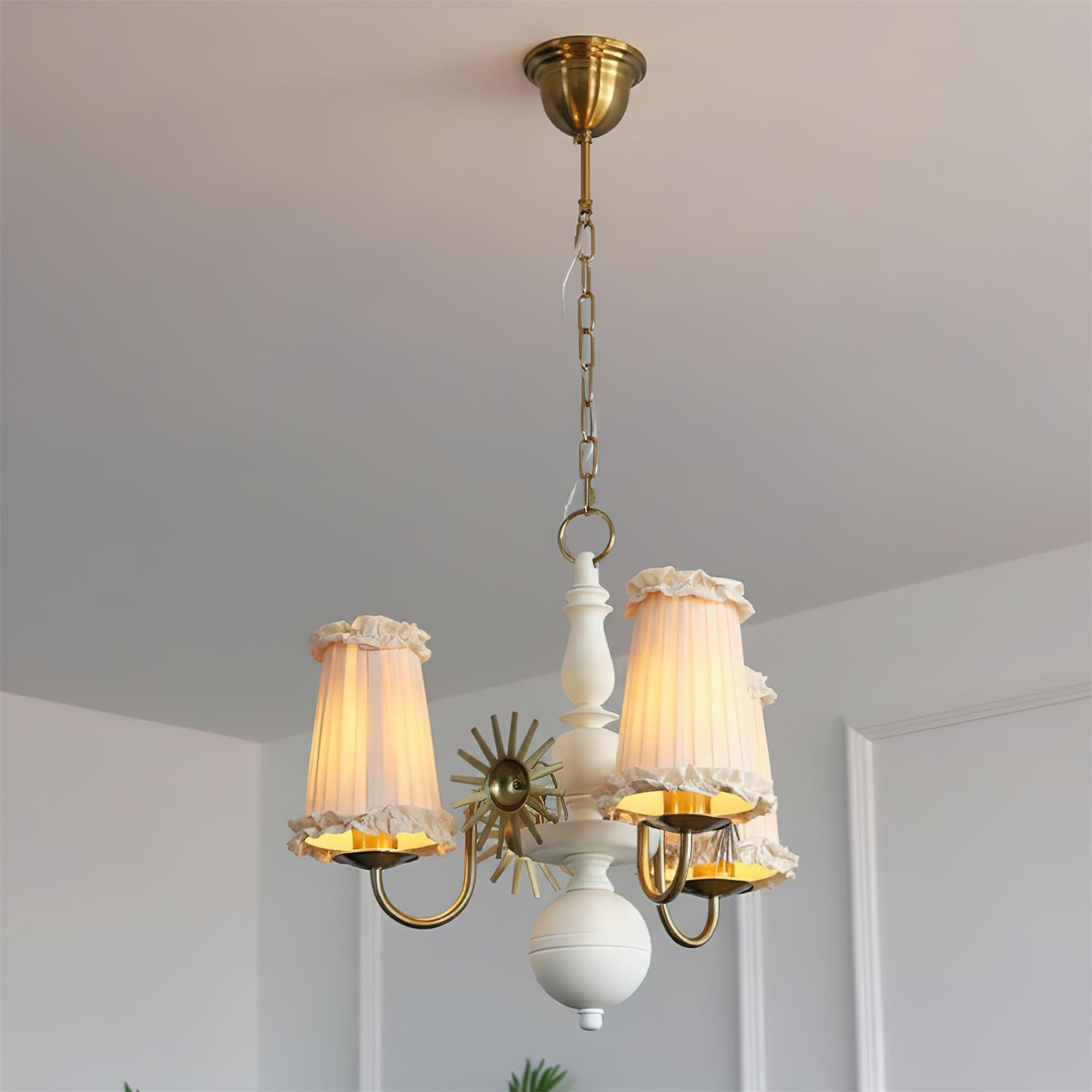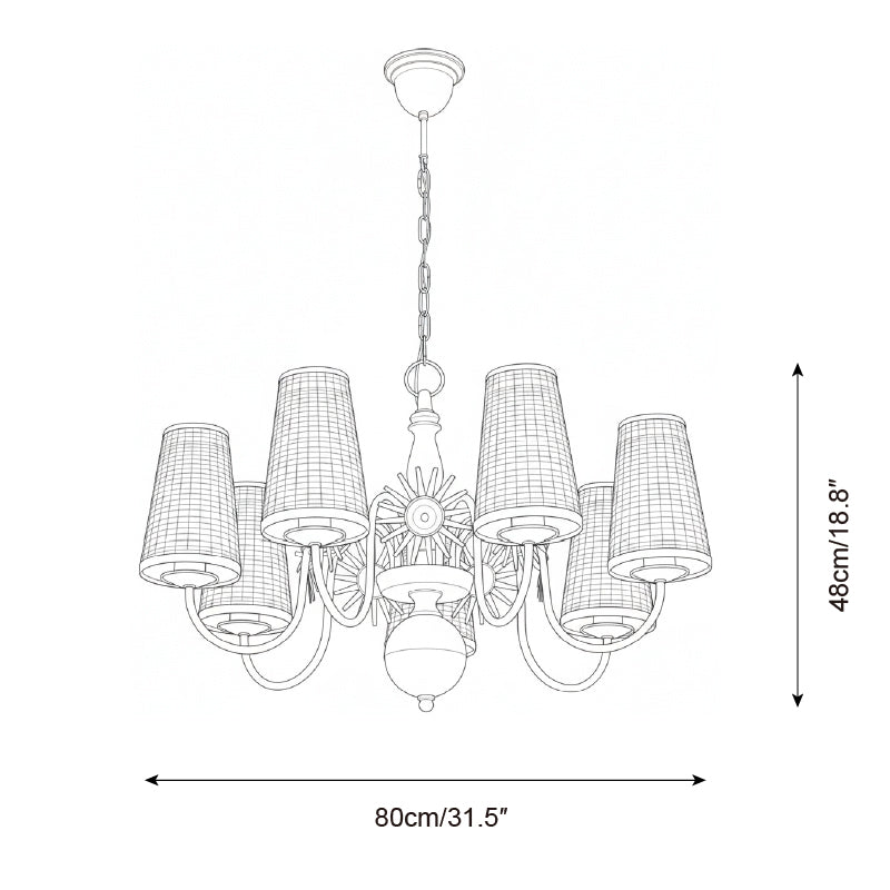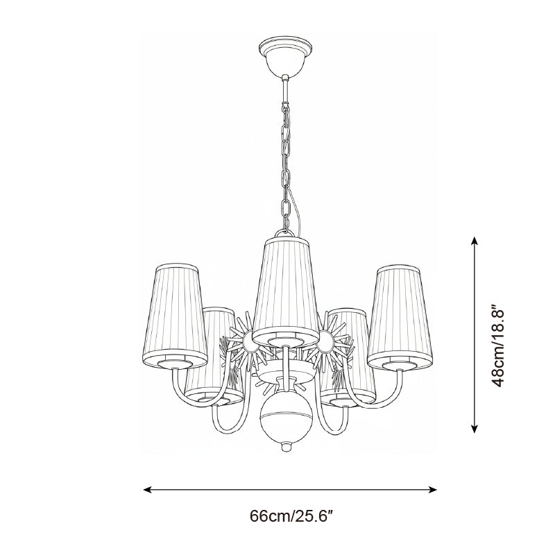 The Ravina Chandelier captures a playful yet elegant spirit, blending nostalgic charm with modern craftsmanship. Its brass arms extend gracefully from a sculpted white core, adorned with handwoven red-and-white fabric shades that radiate warmth and personality. The subtle contrast of textures and tones brings a touch of vintage whimsy to contemporary interiors, making Ravina not just a source of light, but a statement of joyful sophistication.