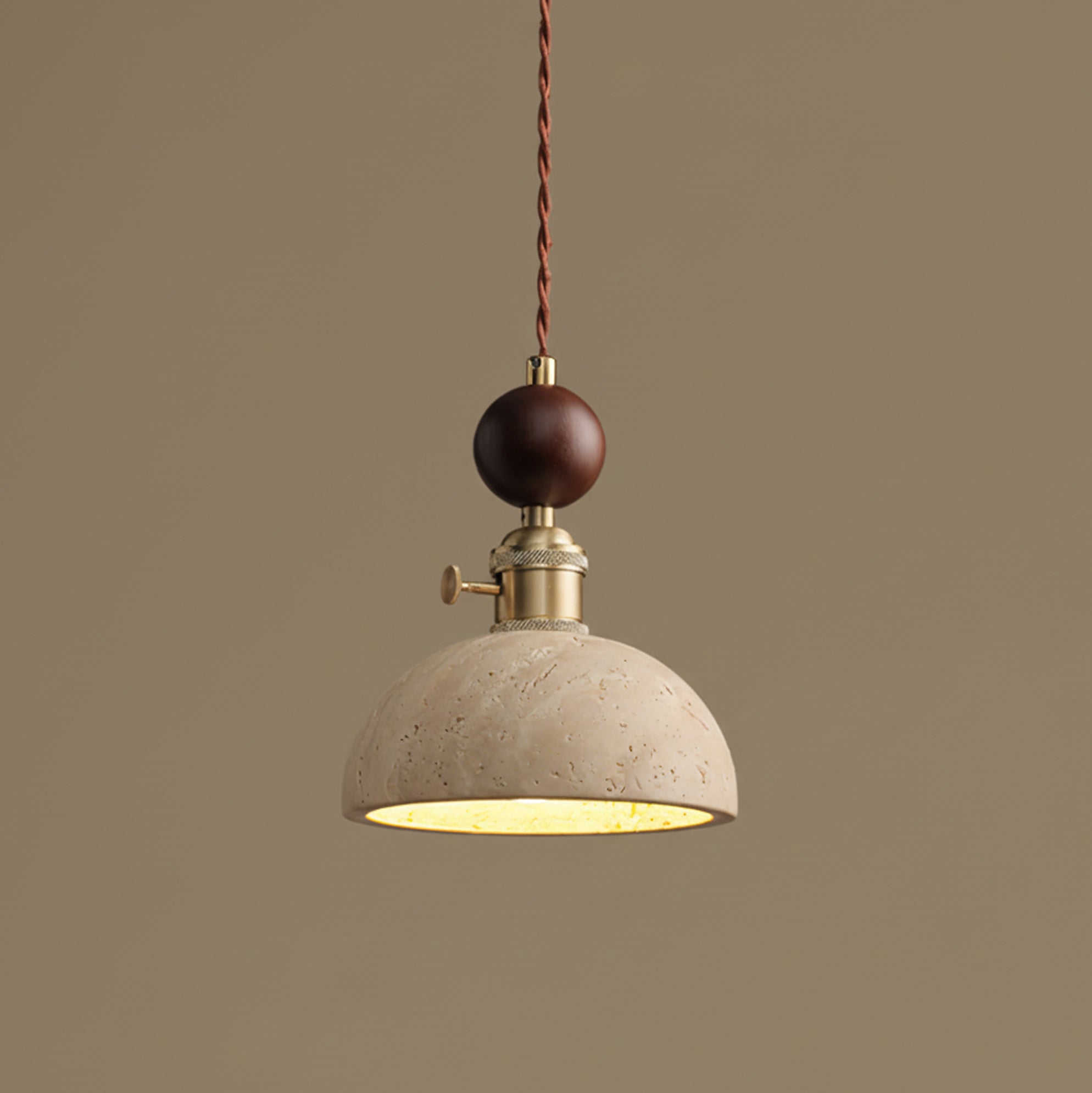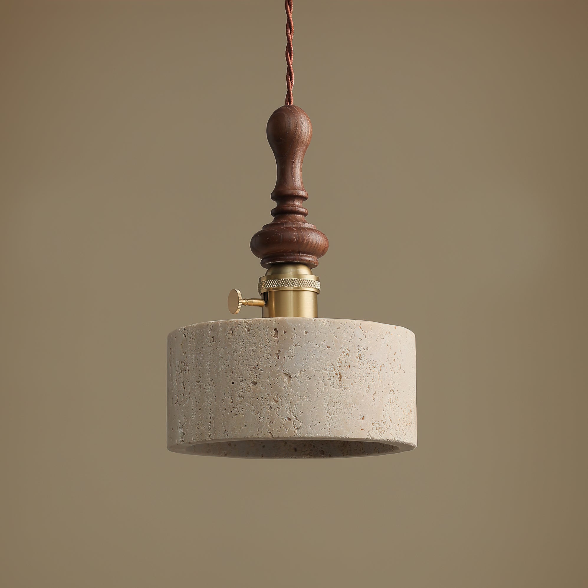 The Canyon Pendant Lamp celebrates the quiet power of natural stone with a sculptural sensibility. Each fixture is carved from travertine, revealing organic pores and subtle tonal variations that make every piece unique. Brass fittings and a walnut stem introduce warmth and balance, while the lamp’s refined geometry — from domed to conical forms — plays with proportion and texture.