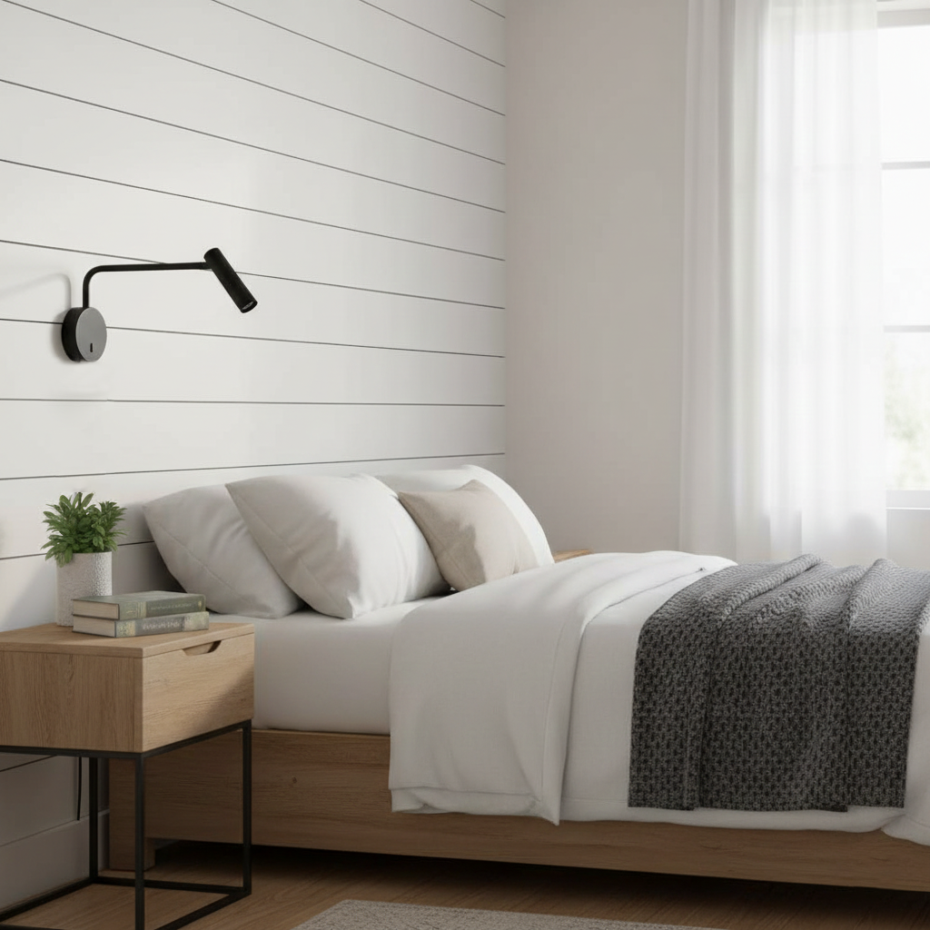 La lámpara de pared de lectura Rizo es la solución de iluminación perfecta para el hogar moderno. Su base de disco minimalista y su brazo en forma de L lo hacen discreto y combinan perfectamente con esquemas de decoración contemporáneos y de transición. Además, su potente downlight LED, su brazo pivotante y su inclinación y rotación ajustables lo hacen muy versátil para cualquier época del año y uso. Disfrute de la iluminación ambiental en cualquier habitación: perfecta para cualquier mesita de noche, pasillo o rincón de lectura.