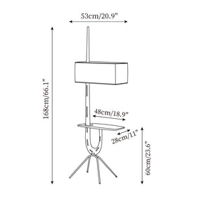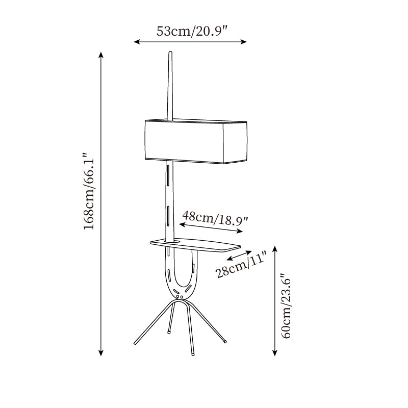 Esta lámpara de pie destaca por su distintivo estilo moderno de mediados de siglo, que combina curvas elegantes con líneas limpias. La base de trípode incluida no sólo garantiza la estabilidad sino que también imparte una sensación de ligereza a la pieza. El material de madera cuidadosamente seleccionado aporta una textura cálida y natural, mientras que la pantalla cuadrada de la parte superior proyecta una luz suave y uniforme, añadiendo un ambiente acogedor a su zona de lectura o descanso. El pequeño estante de madera en el medio ofrece espacio para colocar libros o bebidas, lo que hace que esta lámpara de pie no sea solo un accesorio de iluminación, sino un complemento práctico y elegante para cualquier hogar.
