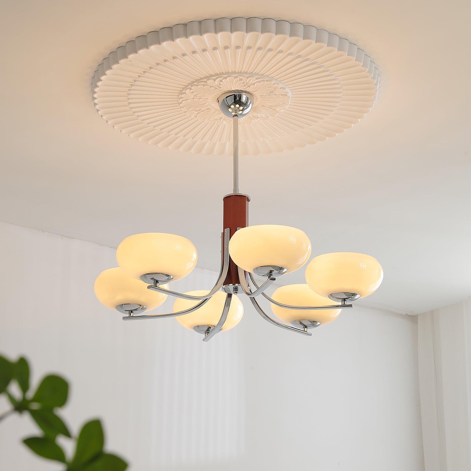 Versatile in its application, the Cream Pudding Ceiling Lamp is suitable for various areas of the home. It makes a striking statement in the hallway, welcoming guests with its graceful presence. In living rooms, it adds a touch of sophistication and warmth, inviting relaxation and conversation. When placed above dining areas, it creates an intimate and romantic setting, perfect for memorable meals with loved ones.