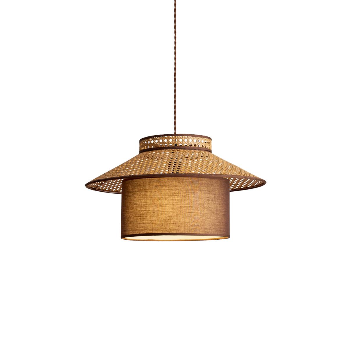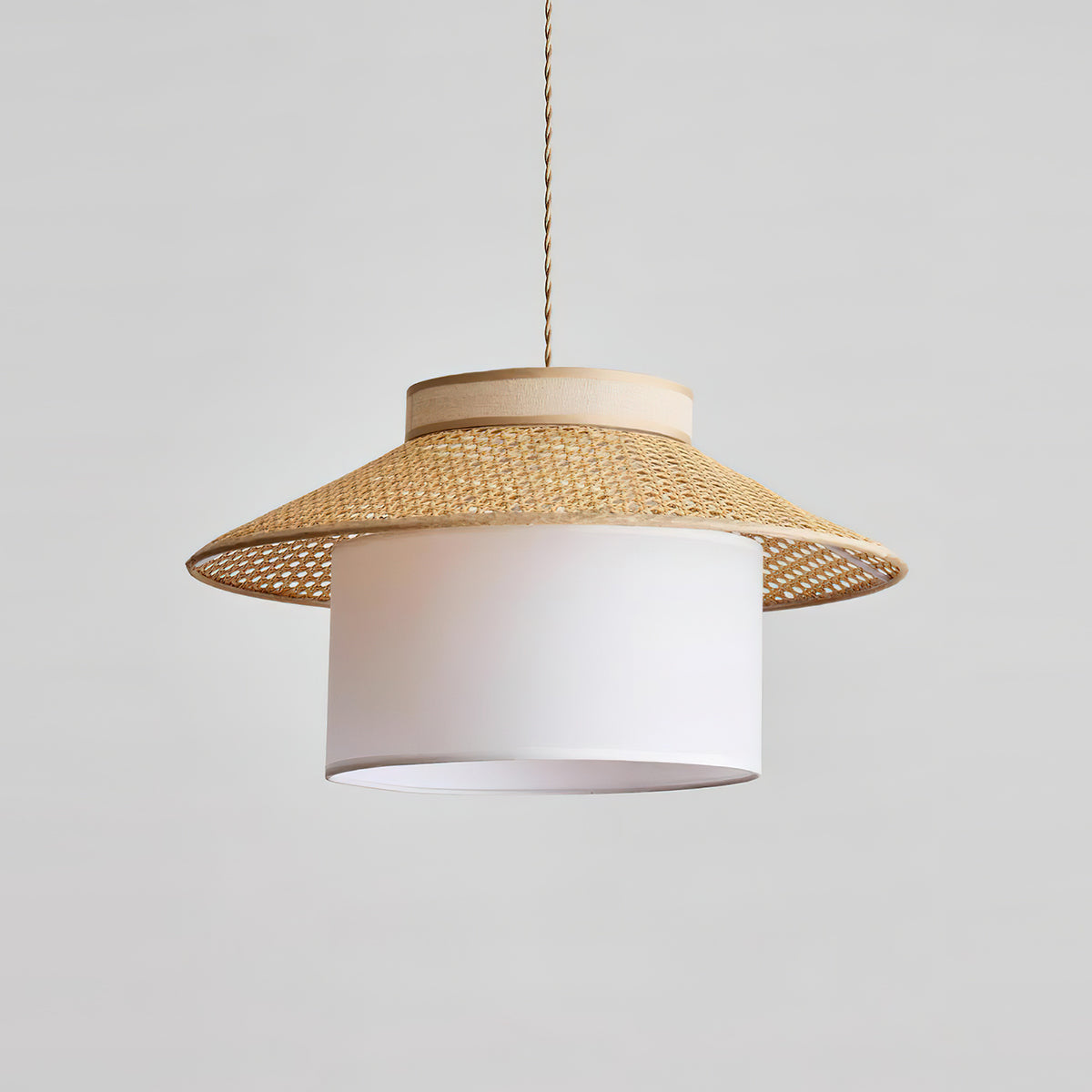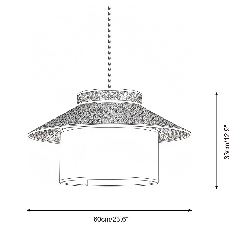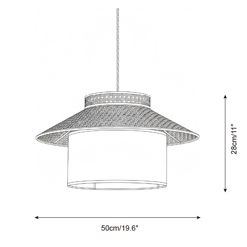 The Ethereal Pendant Lamp combines sleek elegance with natural materials for a stunning visual impact. Its design features a delicate, woven bamboo shade that allows light to filter through, creating a soft, warm ambiance in any space. The minimalistic fabric lining and the contemporary silhouette are a perfect blend of modern style and earthy aesthetics. The craftsmanship and unique materials make this pendant lamp not just a light fixture, but a piece of art.