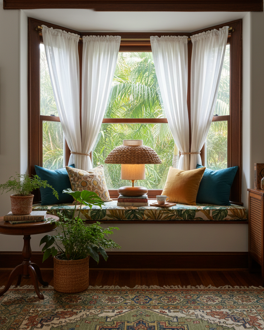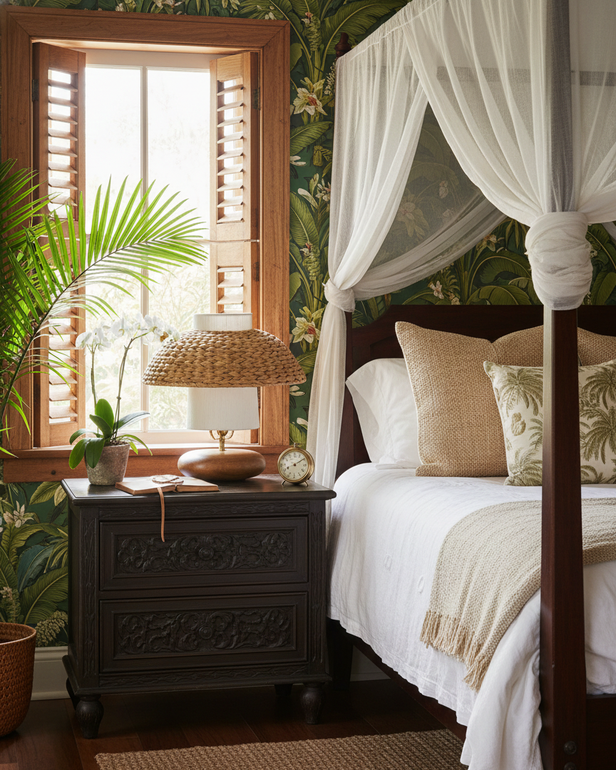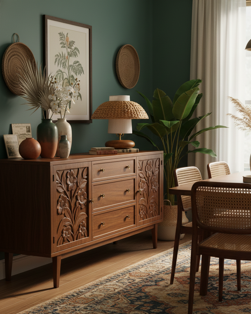 • Metal and Wood, Rattan, Fabric.