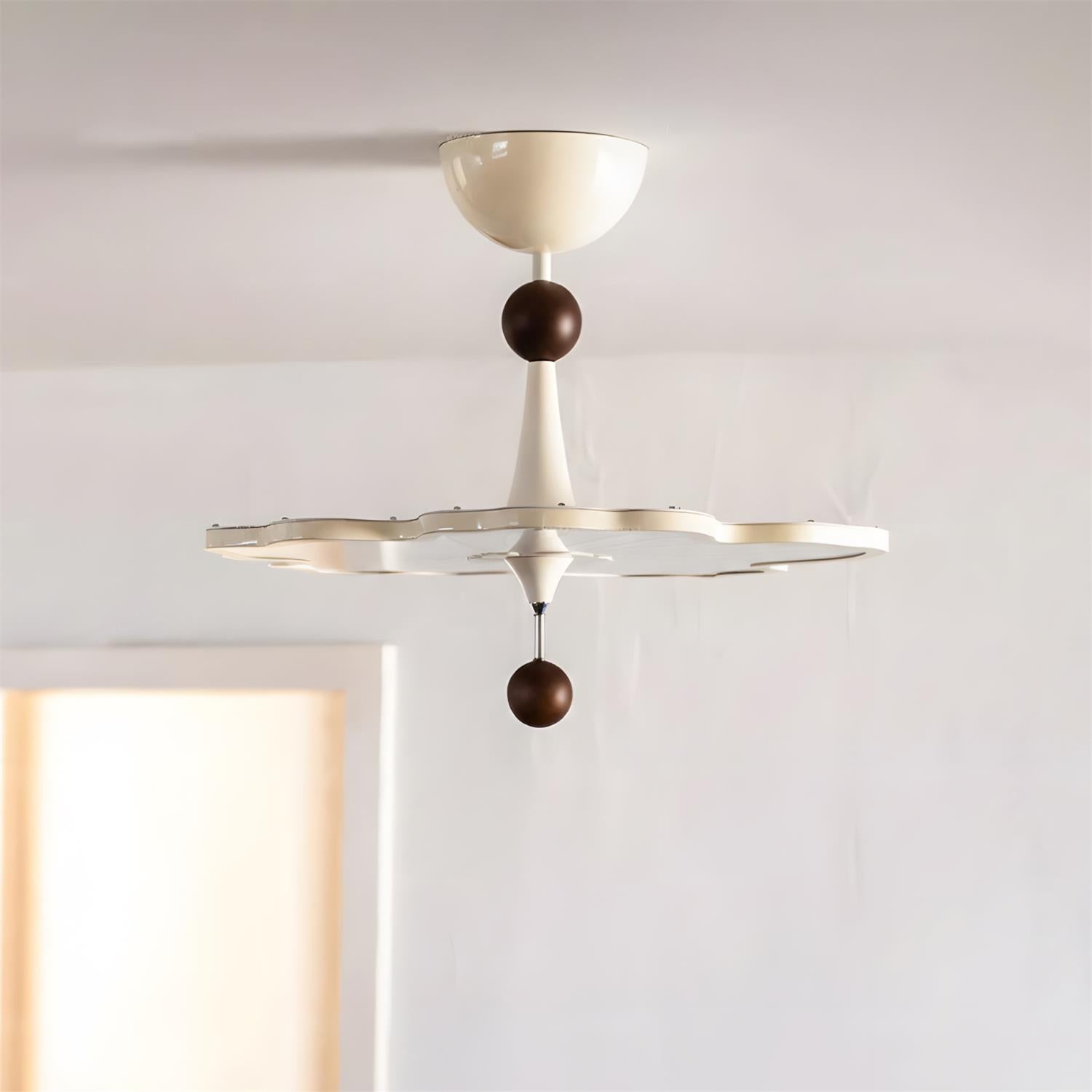 The Calmeo Ceiling Lamp captures a sense of quiet balance through its sculptural, almost floating form. Inspired by gentle motion and organic symmetry, its softly contoured profile spreads light evenly across the ceiling, creating a calm and welcoming atmosphere. The contrasting spherical details add a subtle focal point, grounding the design while introducing a refined decorative rhythm.
