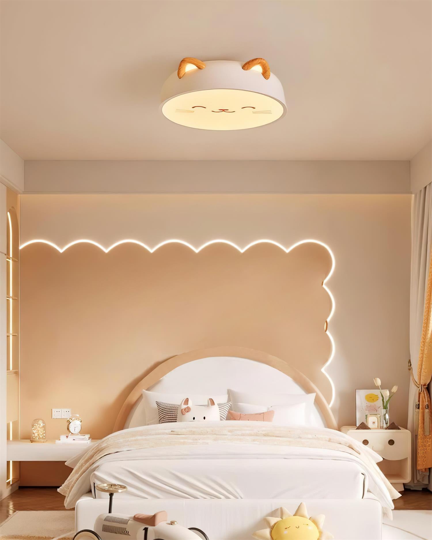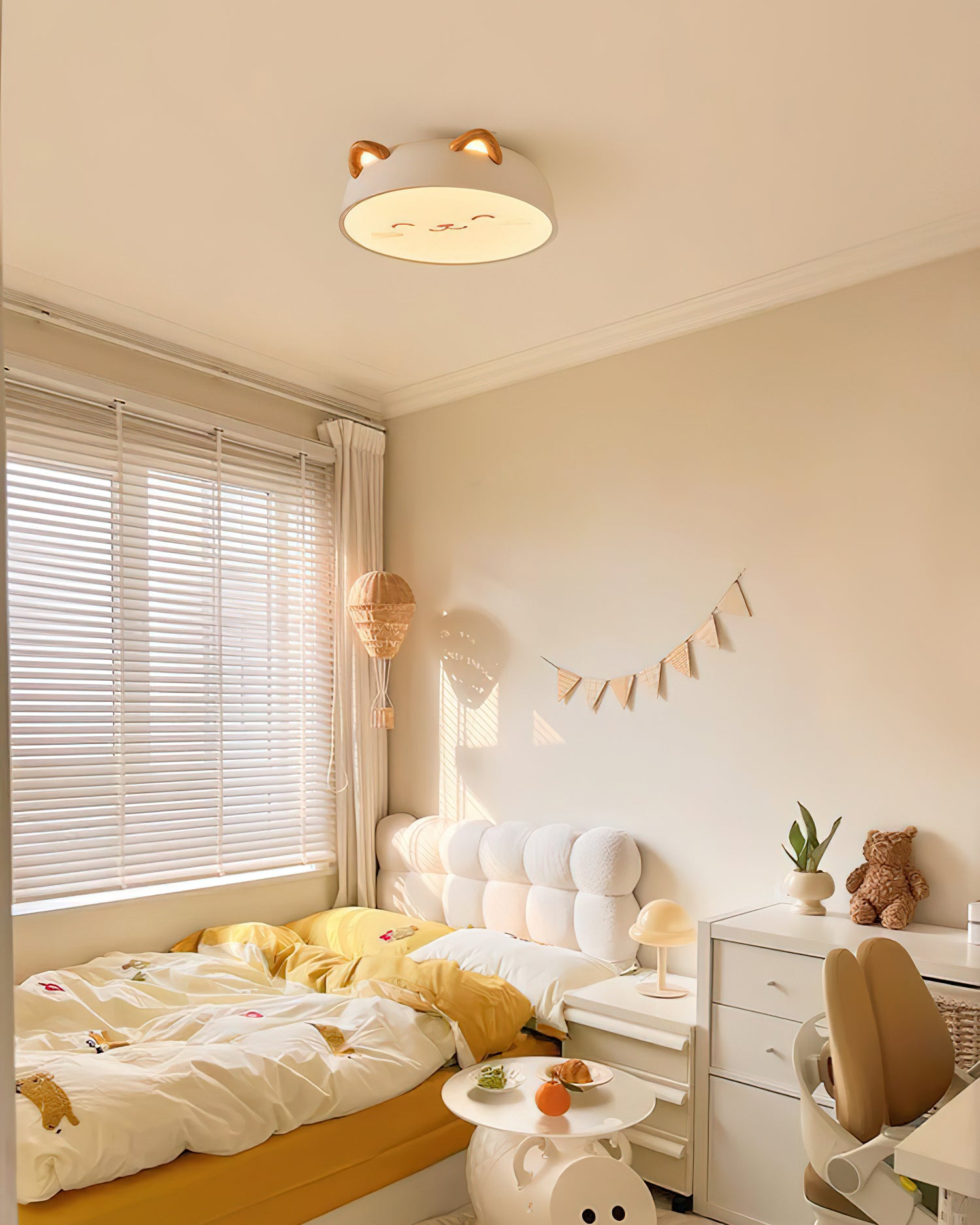 The Mewi Ceiling Lamp is a playful blend of charm and functionality, designed to bring joy and warmth into any space. With its adorable cat face detail and ear accents, it adds a whimsical touch while providing a soft, comforting glow. Perfect for children’s rooms, nurseries, or cozy corners, this lamp transforms the ceiling into a cheerful focal point. Combining a sleek circular form with delightful character, the Mewi Ceiling Lamp is more than just lighting—it’s a piece of happiness for your home.
