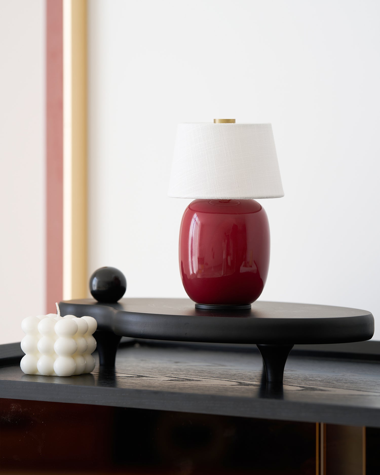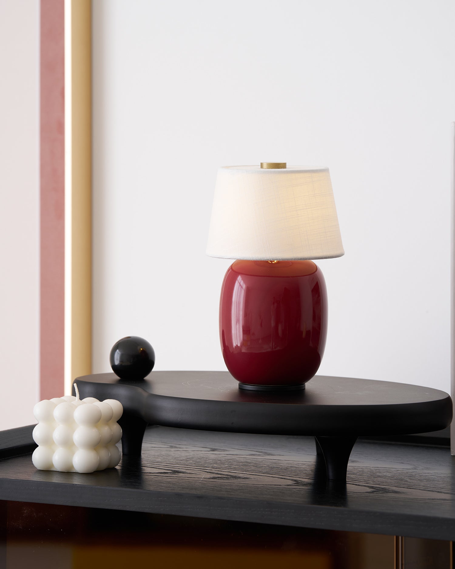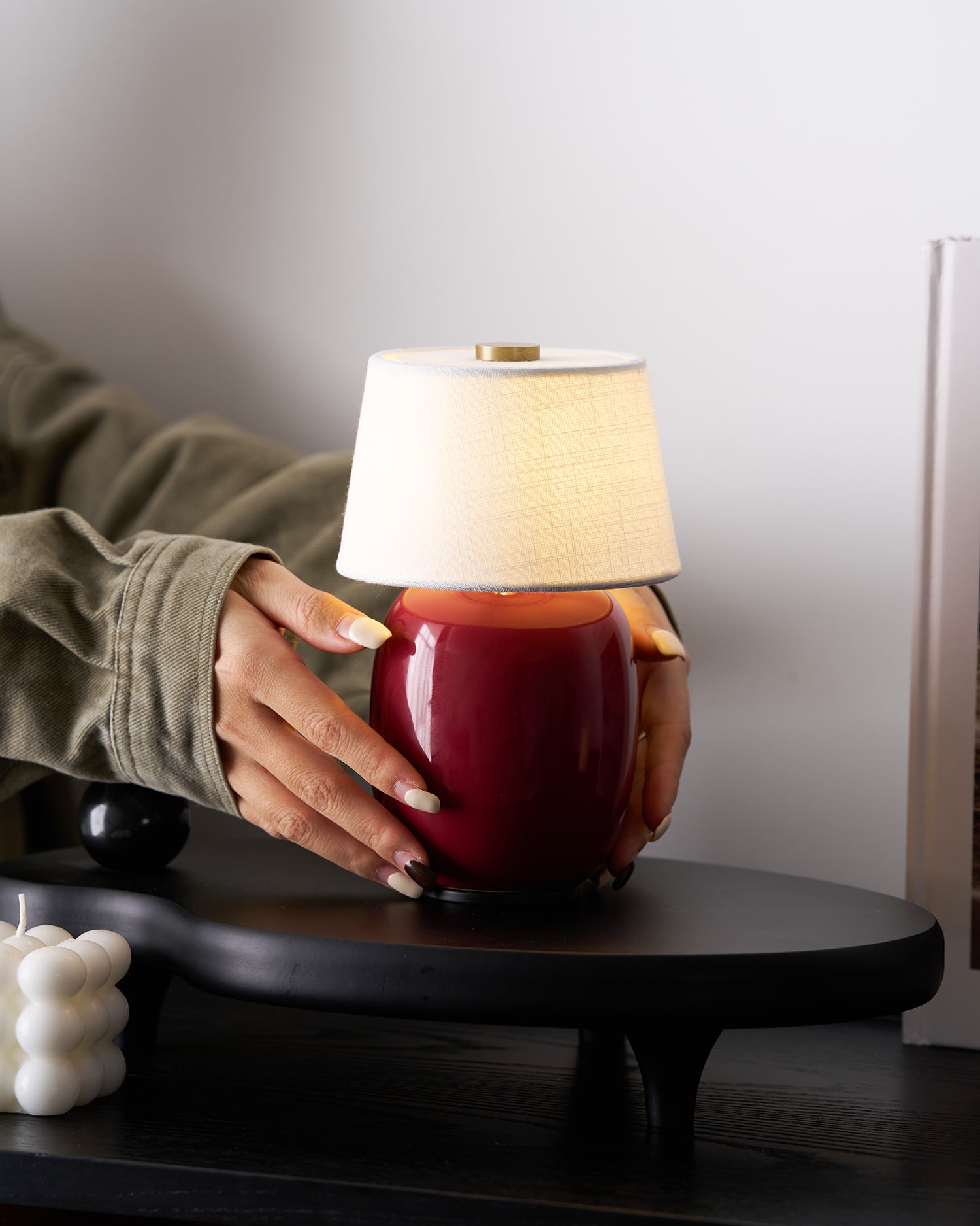 The Marie Table Lamp merges modern sophistication with practical innovation. Its elegant silhouette features a sleek ceramic base in a variety of finishes—deep black, warm burgundy, or classic white—that exude understated luxury. The minimalist design is paired with a soft, glowing fabric lampshade, delivering a comforting light perfect for any bedside or side table.