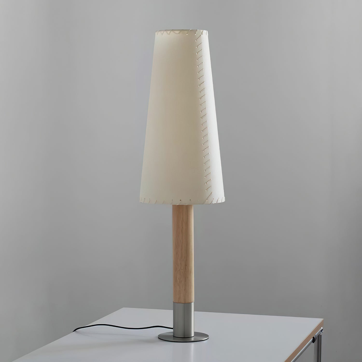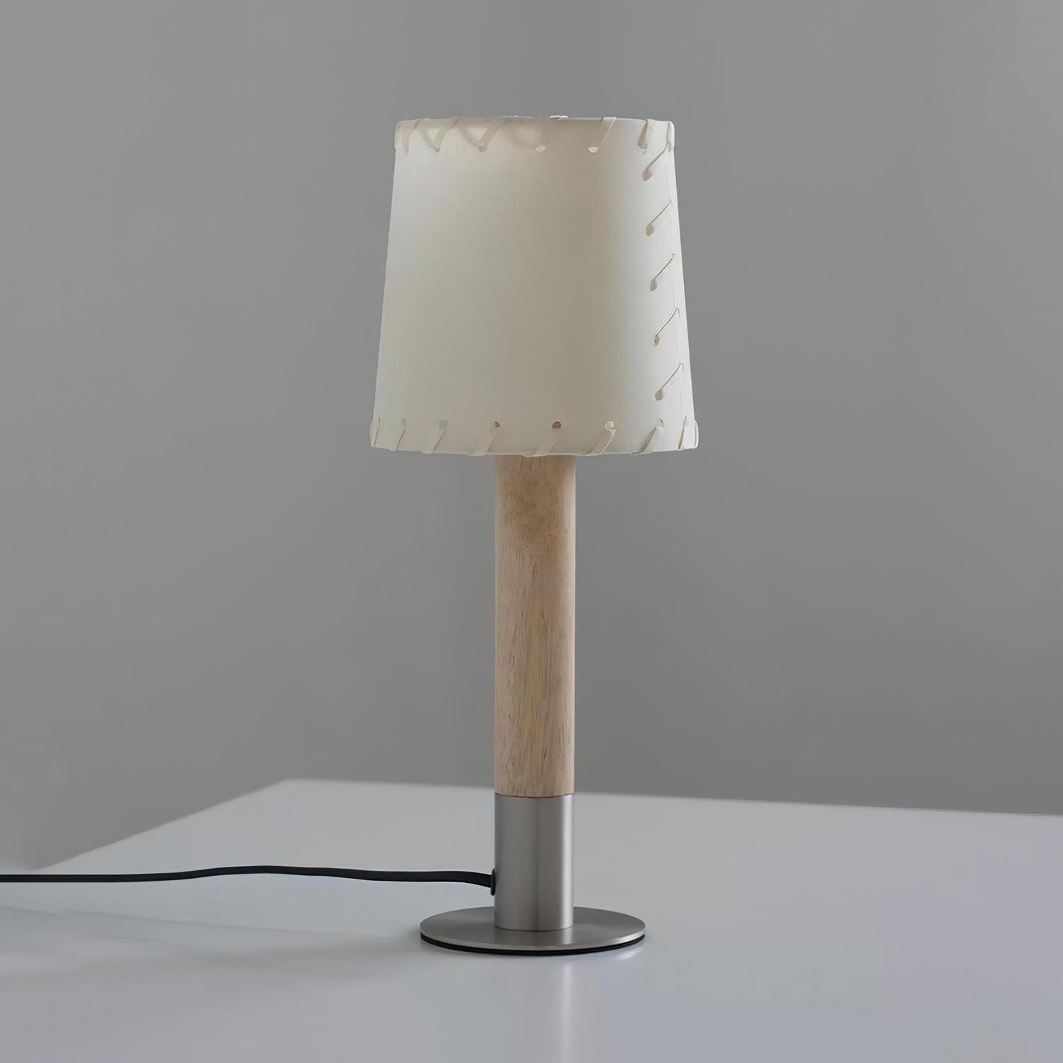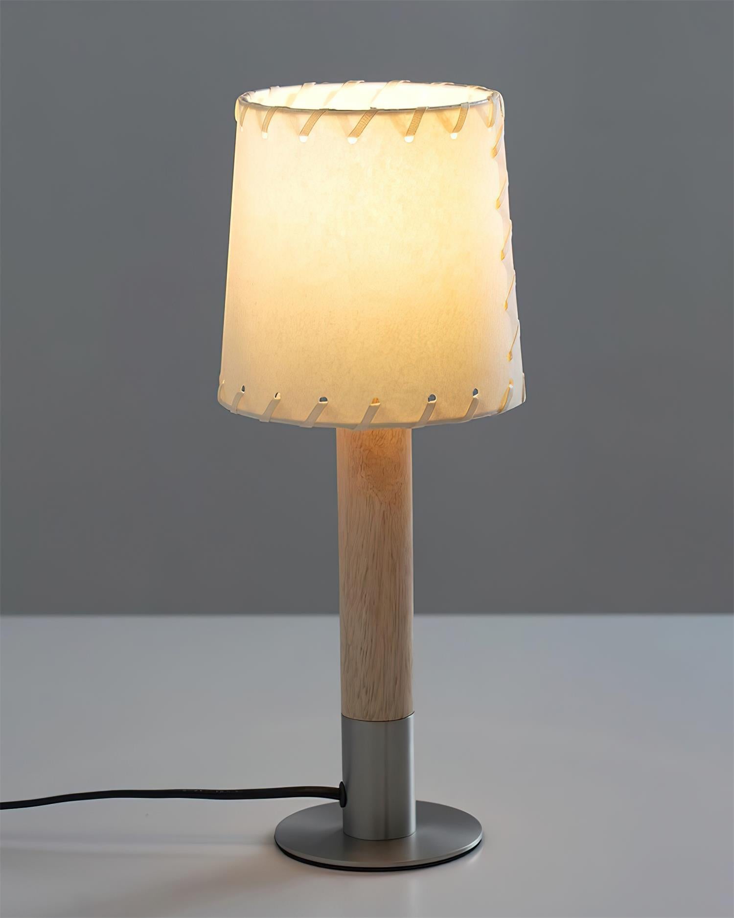The Hemline Table Lamp redefines simplicity with a handcrafted touch, featuring a stitched-edge shade paired with a natural wood stem and sleek metal base. Its clean lines and tactile details create a balance between modern refinement and artisanal warmth, making it a versatile accent for desks, bedside tables, or living spaces. Radiating soft, ambient light, this lamp transforms everyday illumination into an expression of thoughtful design.