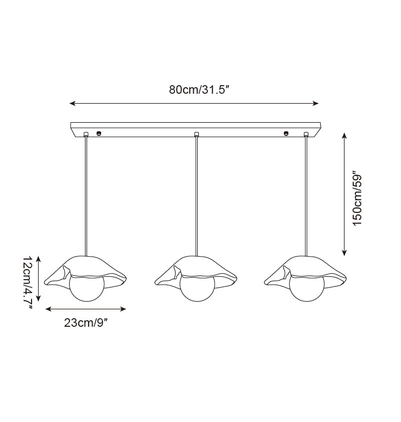 3 Heads Size: L 80cm x H 150cm / L 31.5″ x H 59″