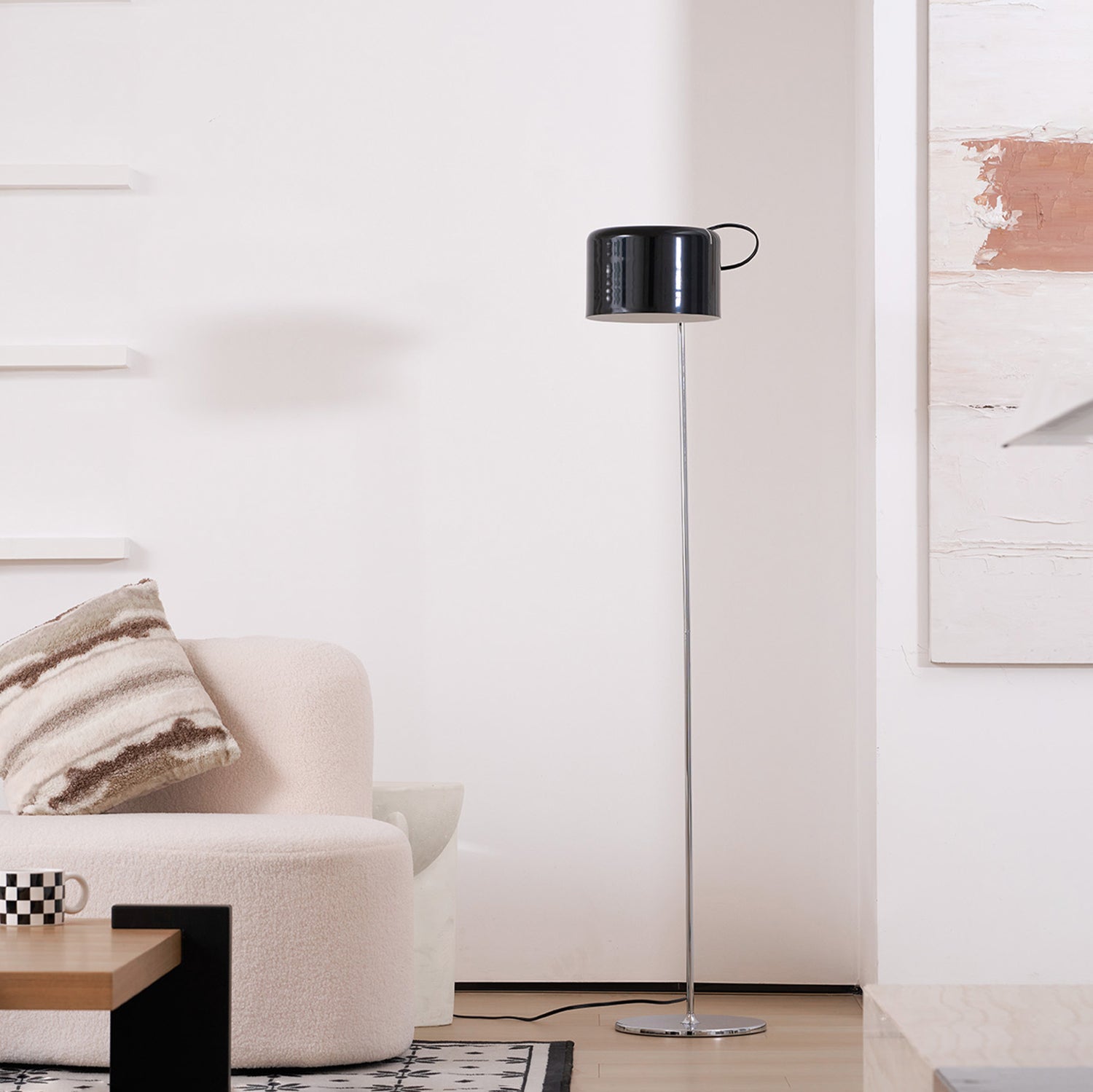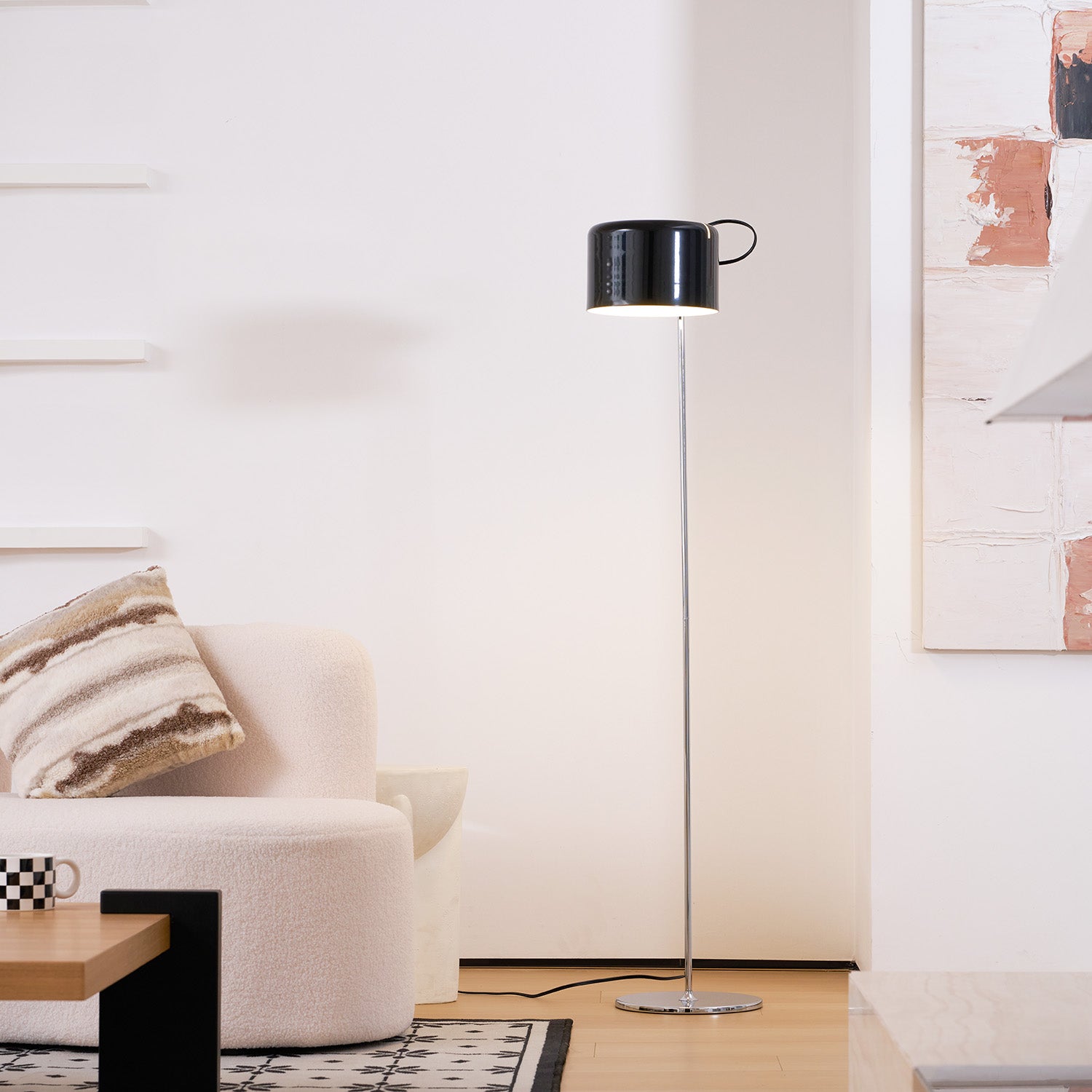 The Coupé Floor Lamp offers flexible illumination and a modern design. It features a unique design that lets you easily move the head up, down, and sideways to direct the light beam precisely where you need it. Its simple yet ingenious mechanism allows for maximum movement with minimal effort.