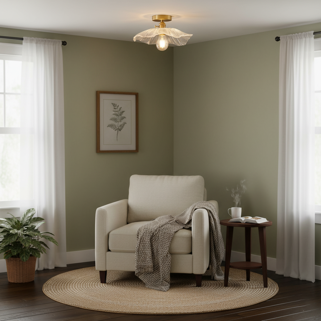 This Flower Glass Ceiling Light is the perfect embodiment of timeless elegance. Its delicate transparent shade radiates nostalgic ambience, creating an exquisite atmosphere in any home. With its classic styling, this Ceiling Light elevates the mood of any space, making it an ideal choice for those who appreciate art and luxury.