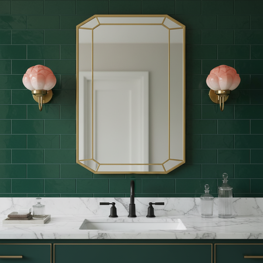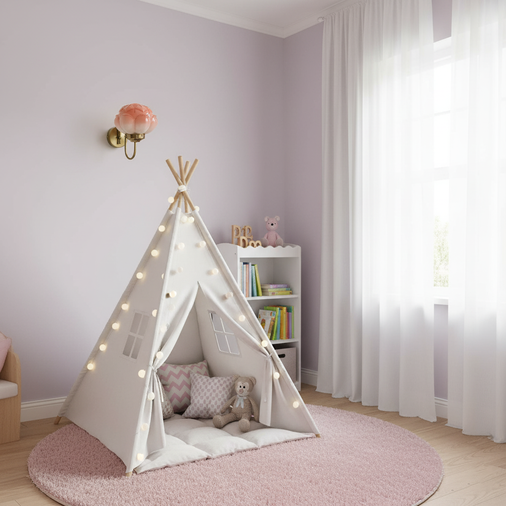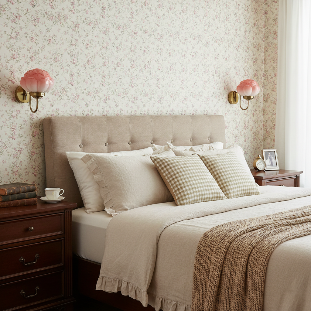 This lamp features a delicately carved lampshade that resembles the gentle petals of a lotus flower, presented in a soft, pastel pink that evokes a sense of calm and serenity. The golden accents of the mount provide a touch of sophistication, making this fixture not just a source of light but a piece of art that will elevate the aesthetic of any room.