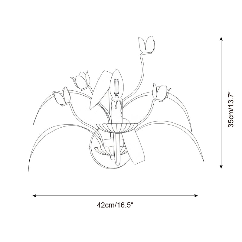 The Springeau Wall Lamp brings a poetic sense of springtime indoors, capturing the moment tulips first unfurl toward the light. Sculpted metal leaves sweep outward in soft, organic curves, while pastel tulip blooms rise delicately from the center, each petal shaped with gentle realism. The candle-style bulbs add a nostalgic glow, enhancing the lamp’s garden-inspired silhouette. Romantic, airy, and full of quiet charm, it transforms any wall into a blooming vignette, infusing the space with warmth, whimsy, and an unmistakable touch of botanical elegance.