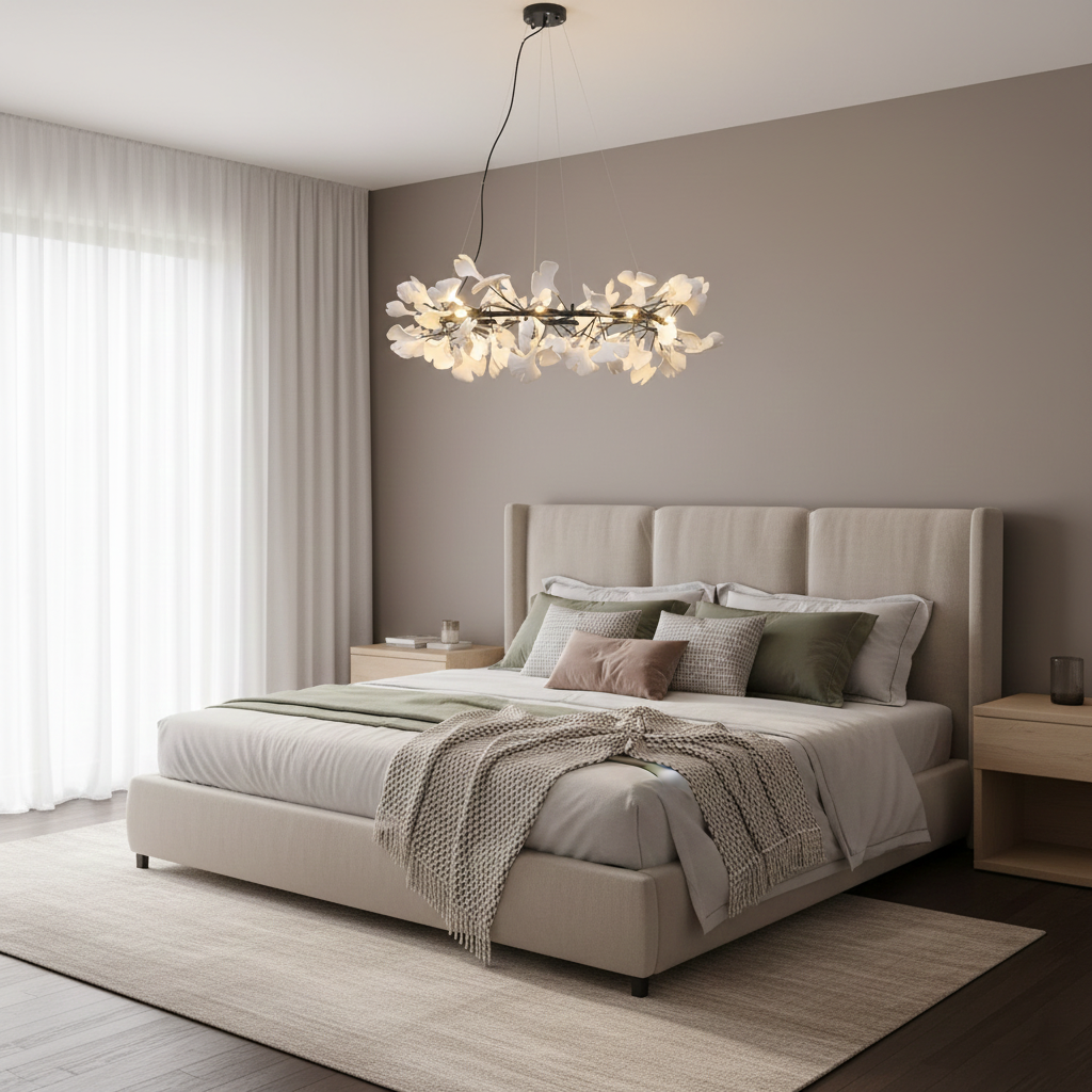 The Gingko Chandelier O Style combines artistic flair with a minimalist and elegant design. Its intricate design vividly captures the texture of ginkgo leaves and the shape of branches, bringing soft lighting and a natural warmth to indoor spaces. This Chandelier is not just a lighting fixture but also a decorative work of art, adding a unique touch of beauty to your home.