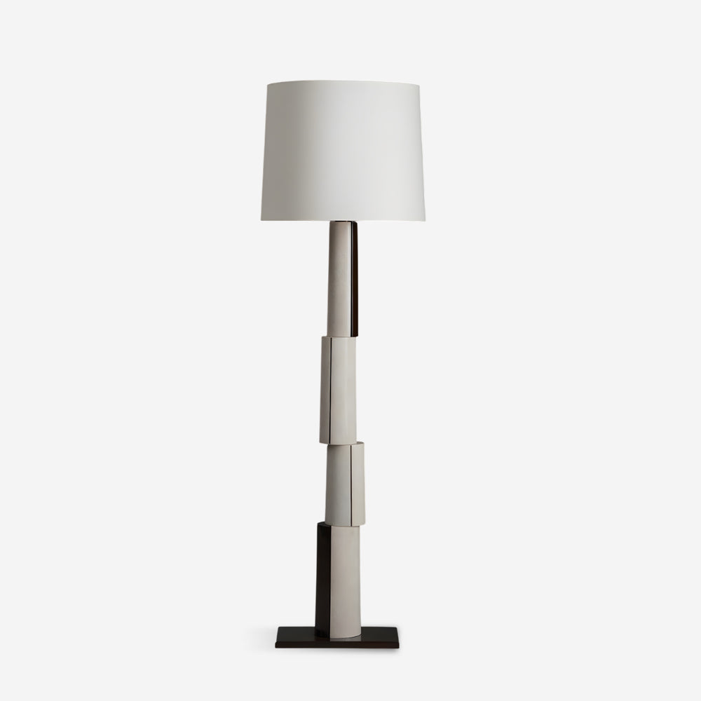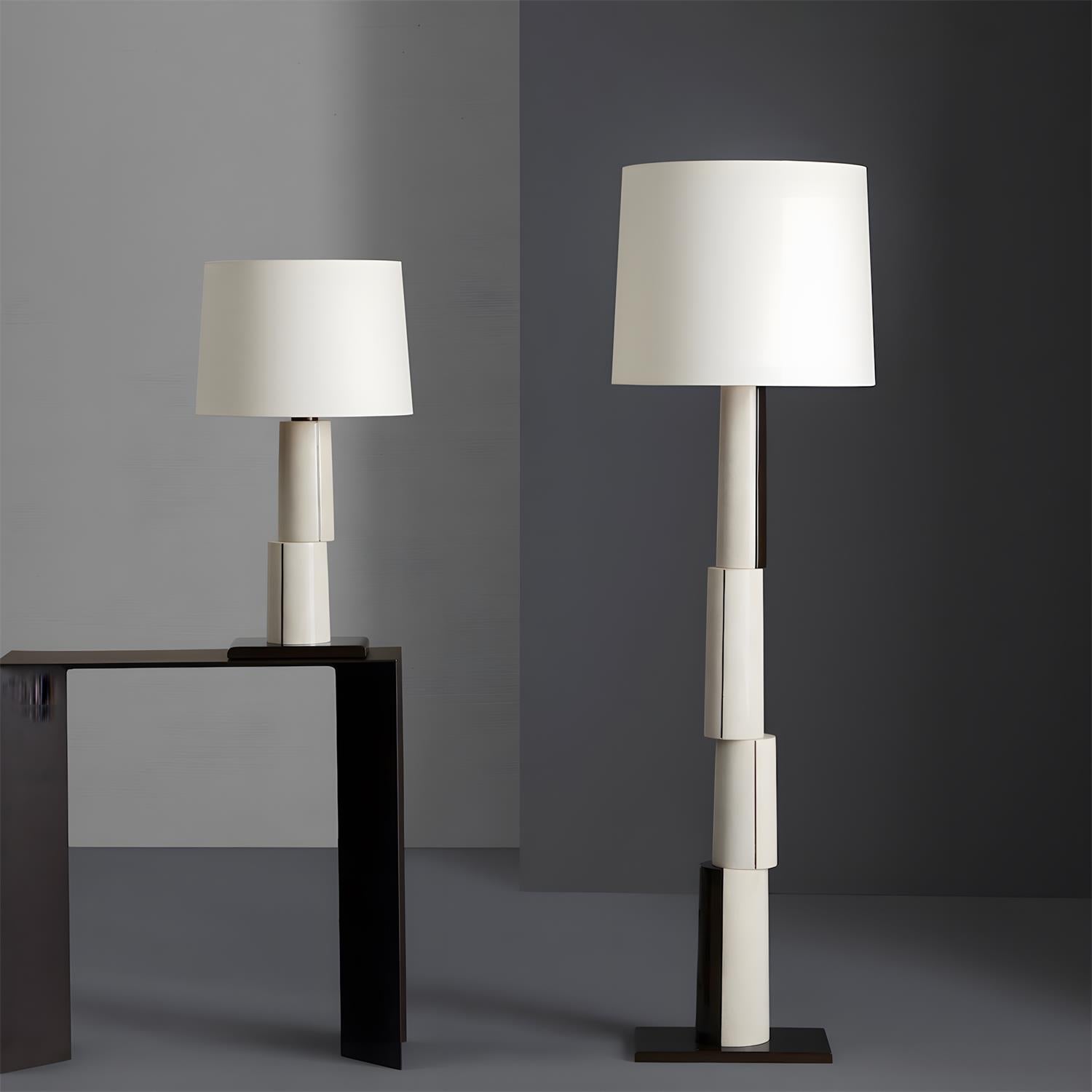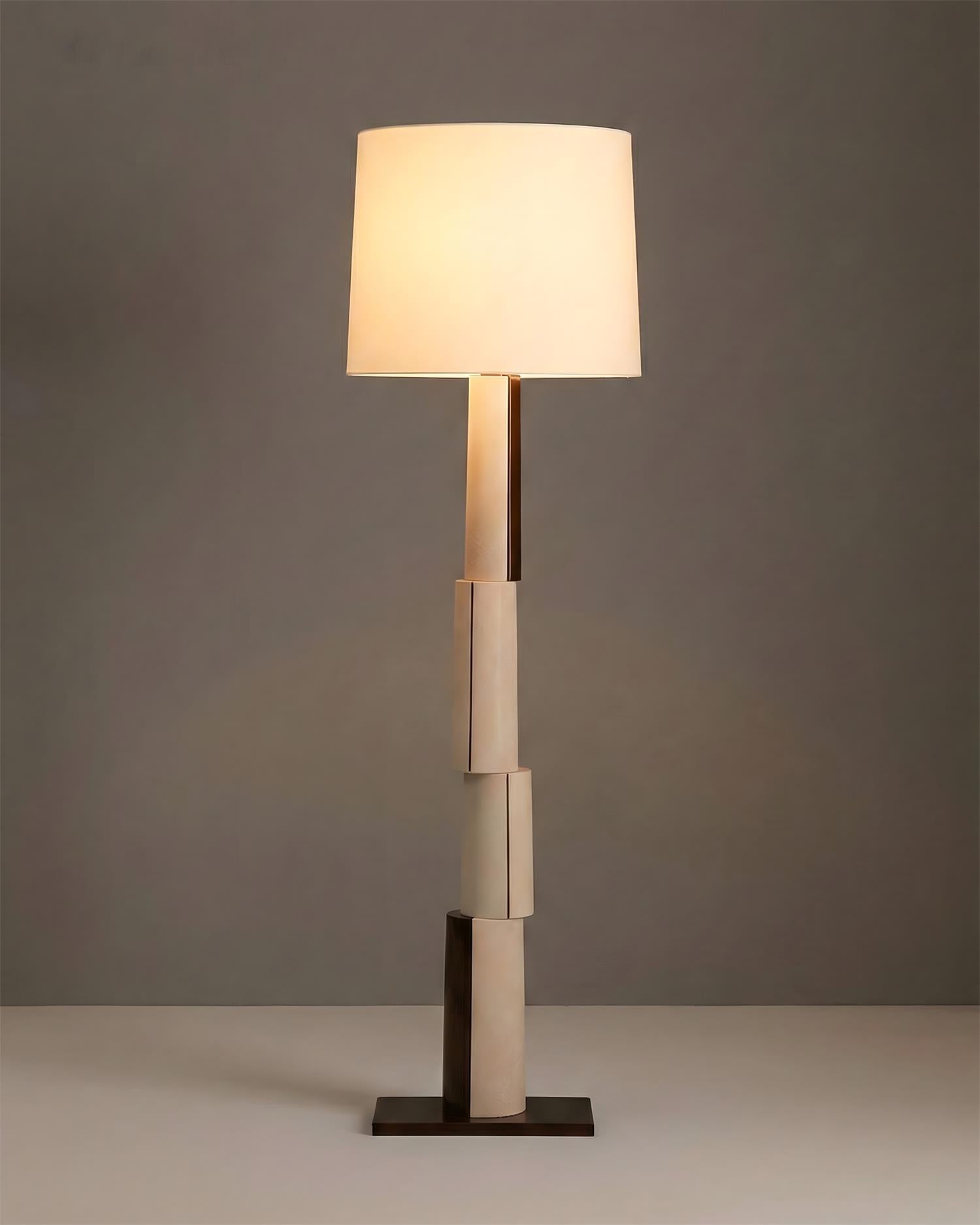 Elion Block Floor Lamp explores balance through geometry, stacking clean-lined forms into a sculptural vertical composition. Its segmented base creates a rhythmic interplay of light and shadow, while the contrasting tones add depth and architectural clarity. Topped with a refined fabric shade, Elion diffuses a soft, ambient glow that feels calm and intentional.