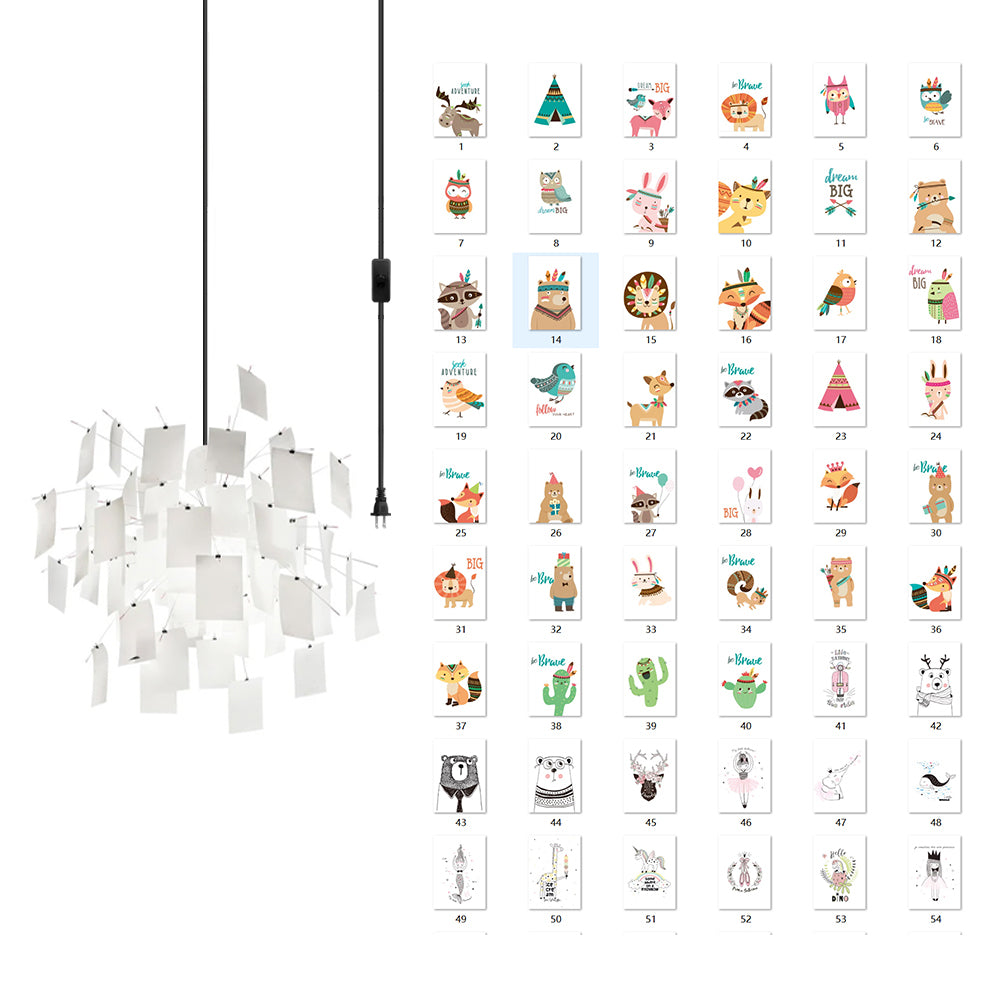 Introducing the "Mina Paper Chandelier" from Docos, where whimsy and creativity intertwine in an enchanting display of light and art. Each carefully curated piece floats ethereally in your space, featuring a myriad of playful illustrations—from vibrant botanicals to abstract designs—etched on lightweight, translucent paper. Ideal for brightening a creative studio or adding a unique touch to a modern living room, the Mina Paper Chandelier promises to transform any environment into a haven of artistic expression.