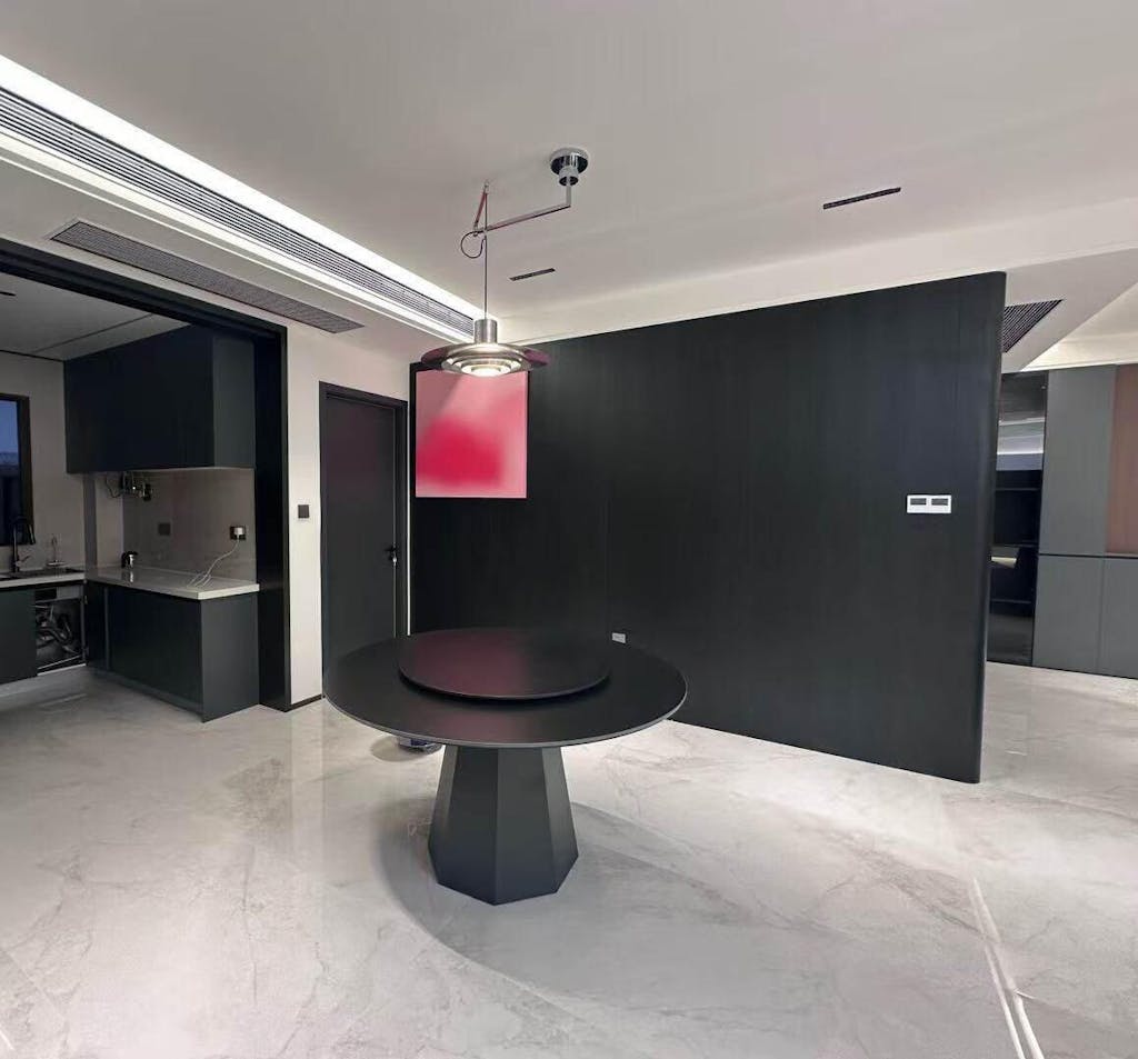 It fits comfortably in our open dining area.The size feels right for the space and doesnt overwhelm the room.