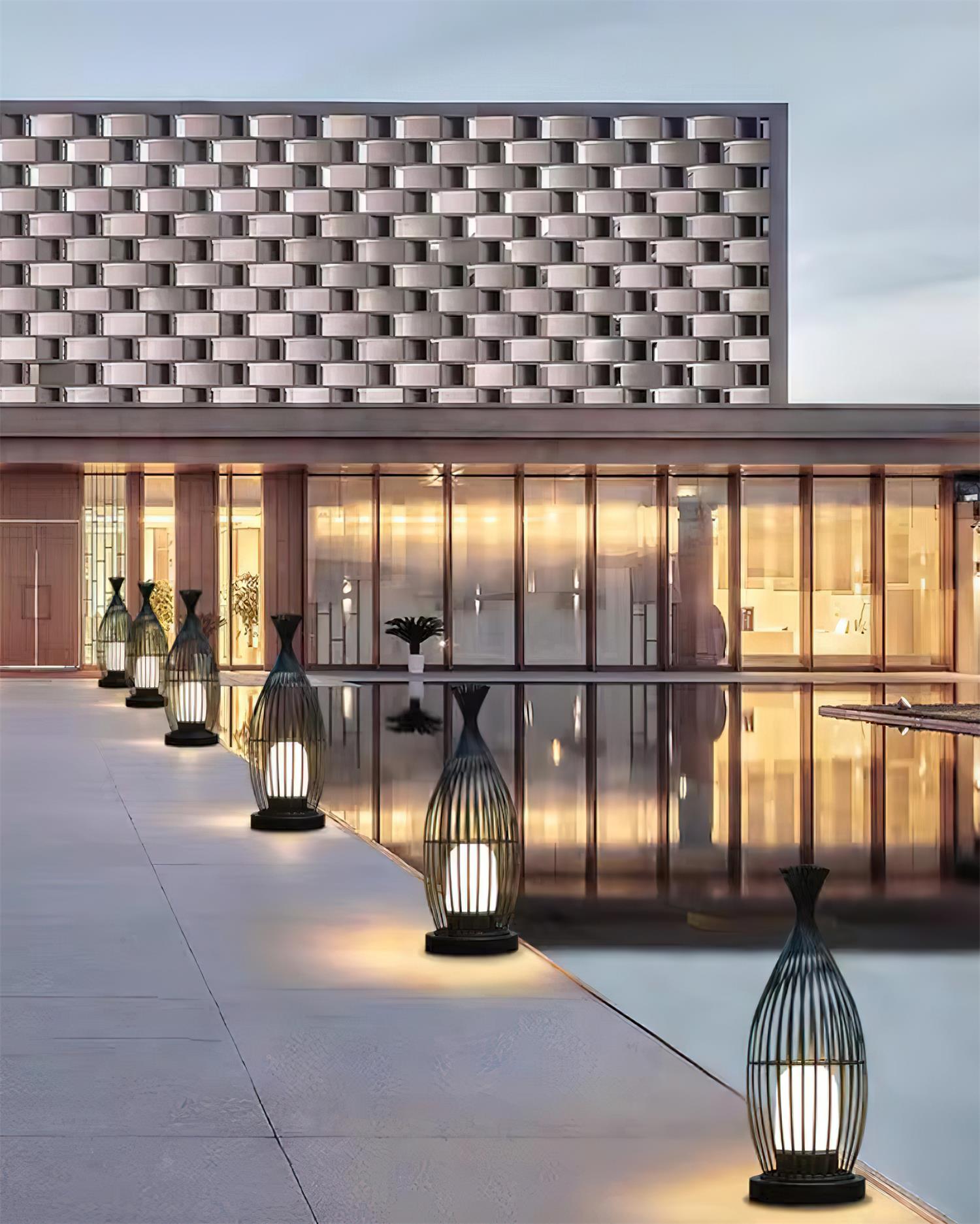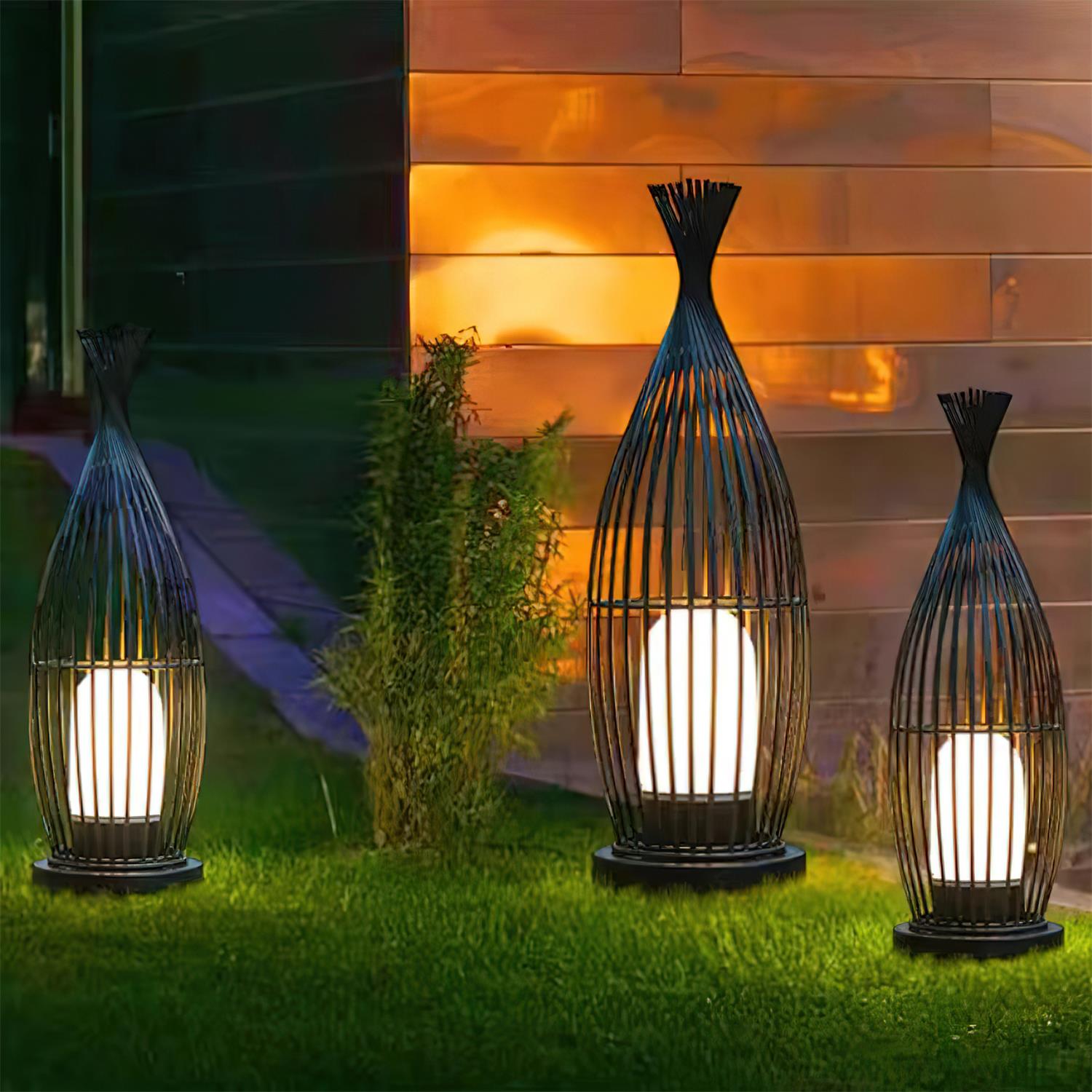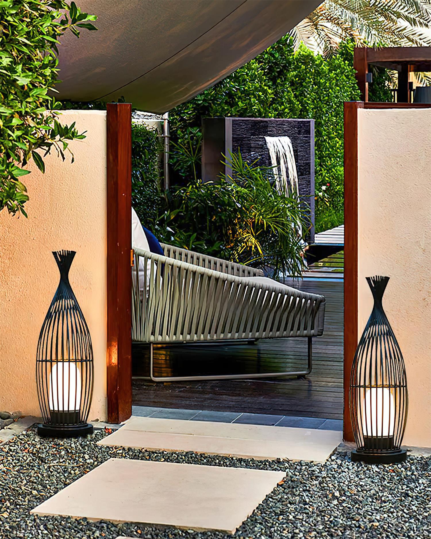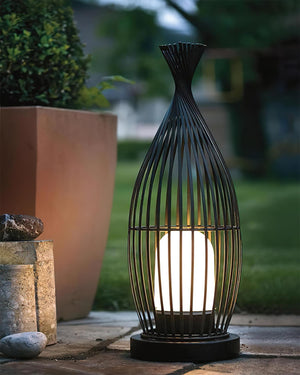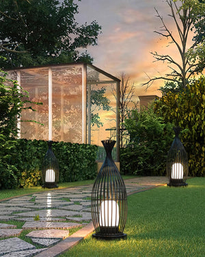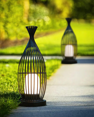 The Birdcage Outdoor Post Light embodies a striking blend of contemporary design and industrial craftsmanship. Made from durable metal, stainless steel, and acrylic, this lamp showcases an elegant birdcage-inspired shape, with gracefully arched slats that encircle the light source. The open, airy design creates beautiful light patterns, casting a soft glow while adding a touch of modern sophistication to your outdoor spaces.The sturdy base ensures stability, making this light perfect for illuminating garden pathways, patios, or entryways.