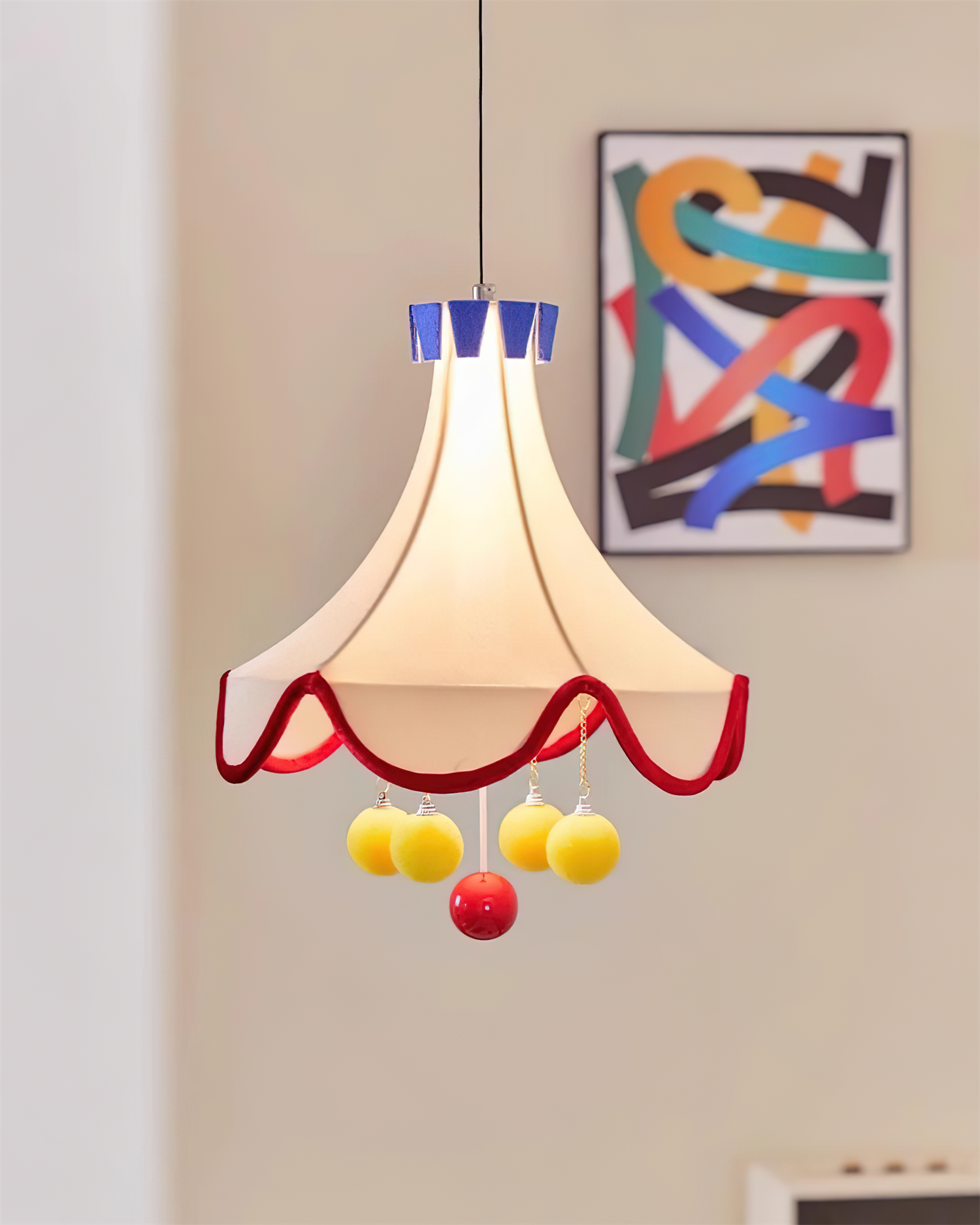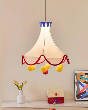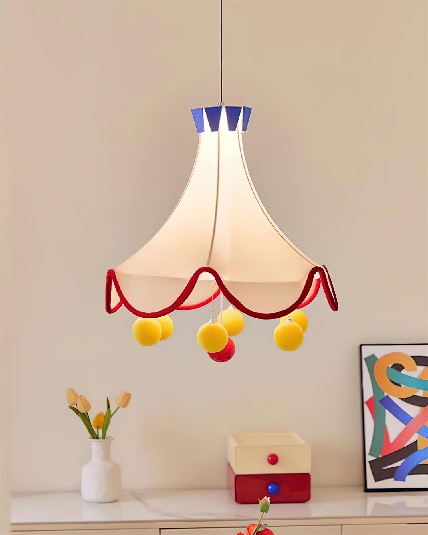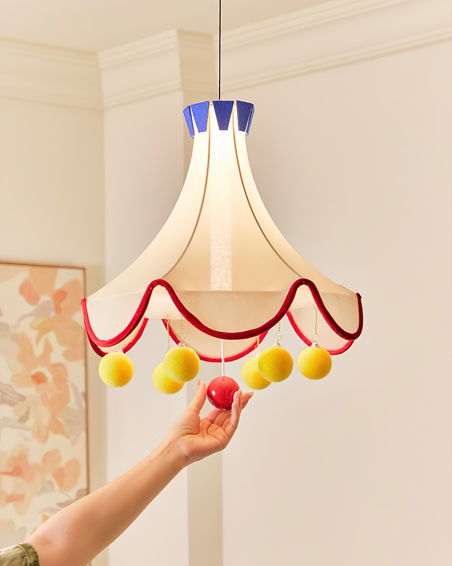 The Finaflor Pendant Lamp turns everyday lighting into a celebration of whimsy and imagination. Inspired by vintage circus tents, its sweeping silhouette is trimmed in vivid red scallops and crowned with playful pom-pom accents that bounce with charm. The sculptural shade softens the light with a warm, inviting glow, making it ideal for creative spaces, children’s rooms, or any corner in need of a touch of joy. Both nostalgic and contemporary, Finaflor invites smiles and sparks conversation—lighting that’s truly fun at heart.