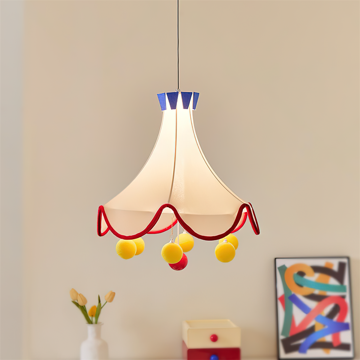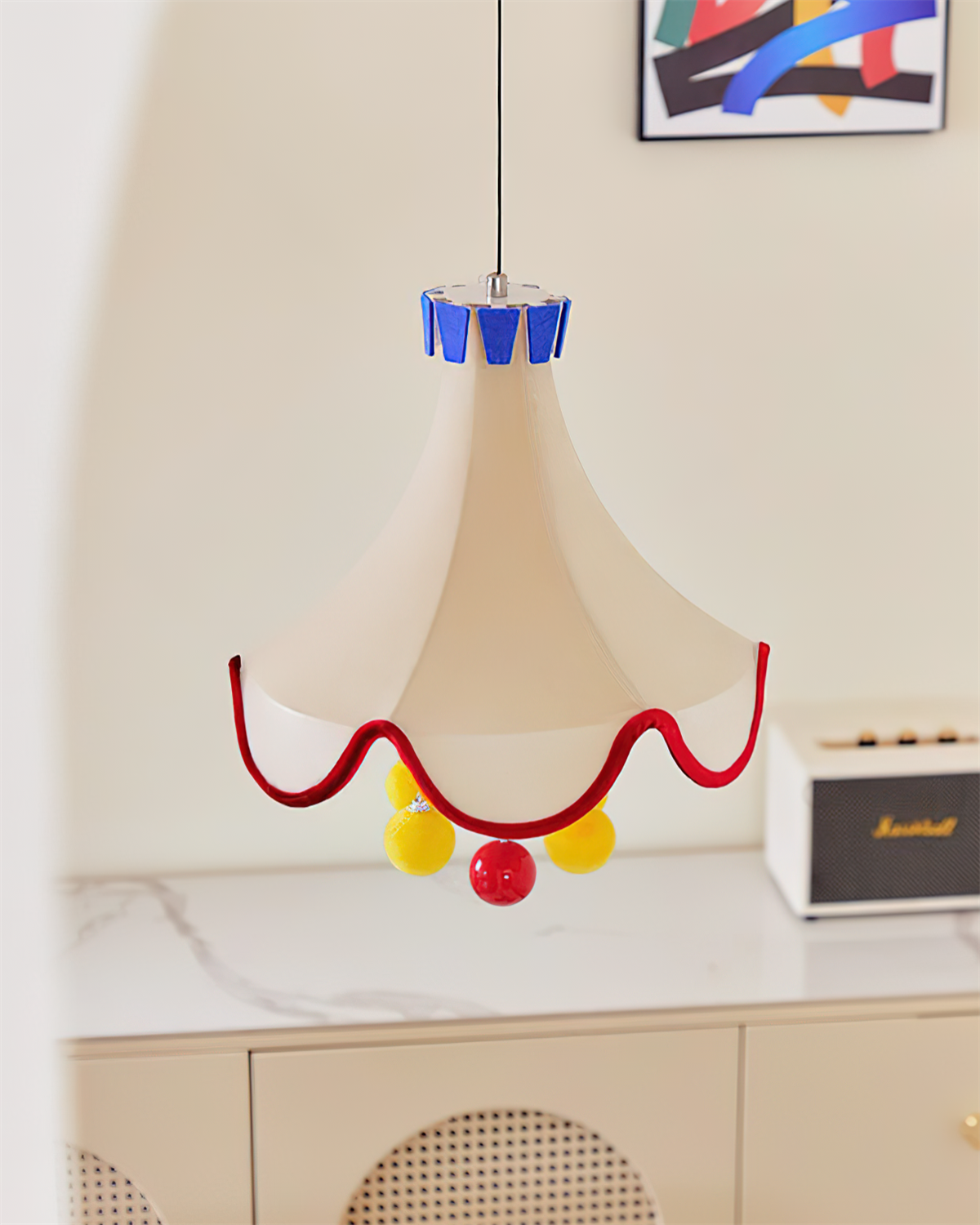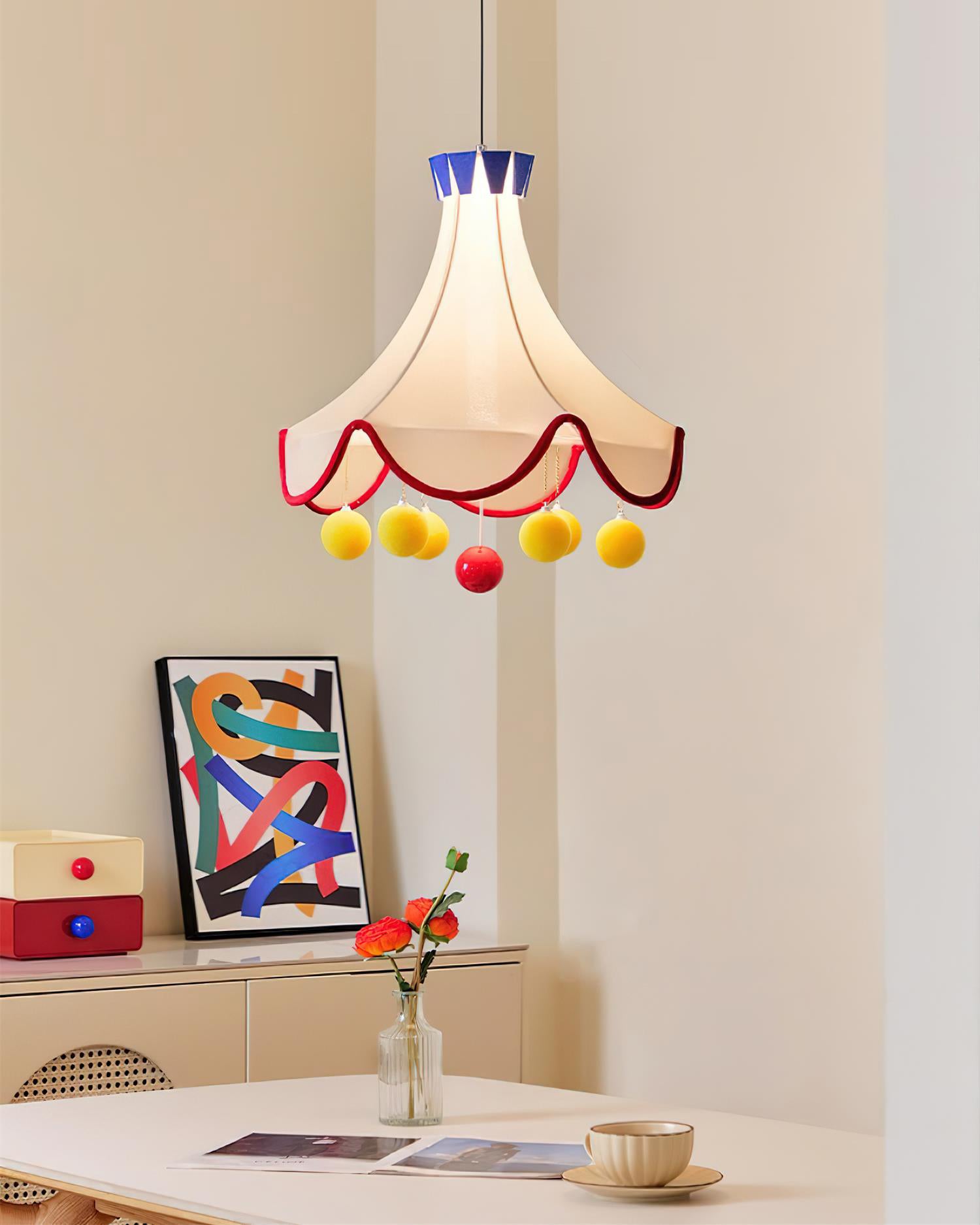 The Finaflor Pendant Lamp turns everyday lighting into a celebration of whimsy and imagination. Inspired by vintage circus tents, its sweeping silhouette is trimmed in vivid red scallops and crowned with playful pom-pom accents that bounce with charm. The sculptural shade softens the light with a warm, inviting glow, making it ideal for creative spaces, children’s rooms, or any corner in need of a touch of joy. Both nostalgic and contemporary, Finaflor invites smiles and sparks conversation—lighting that’s truly fun at heart.