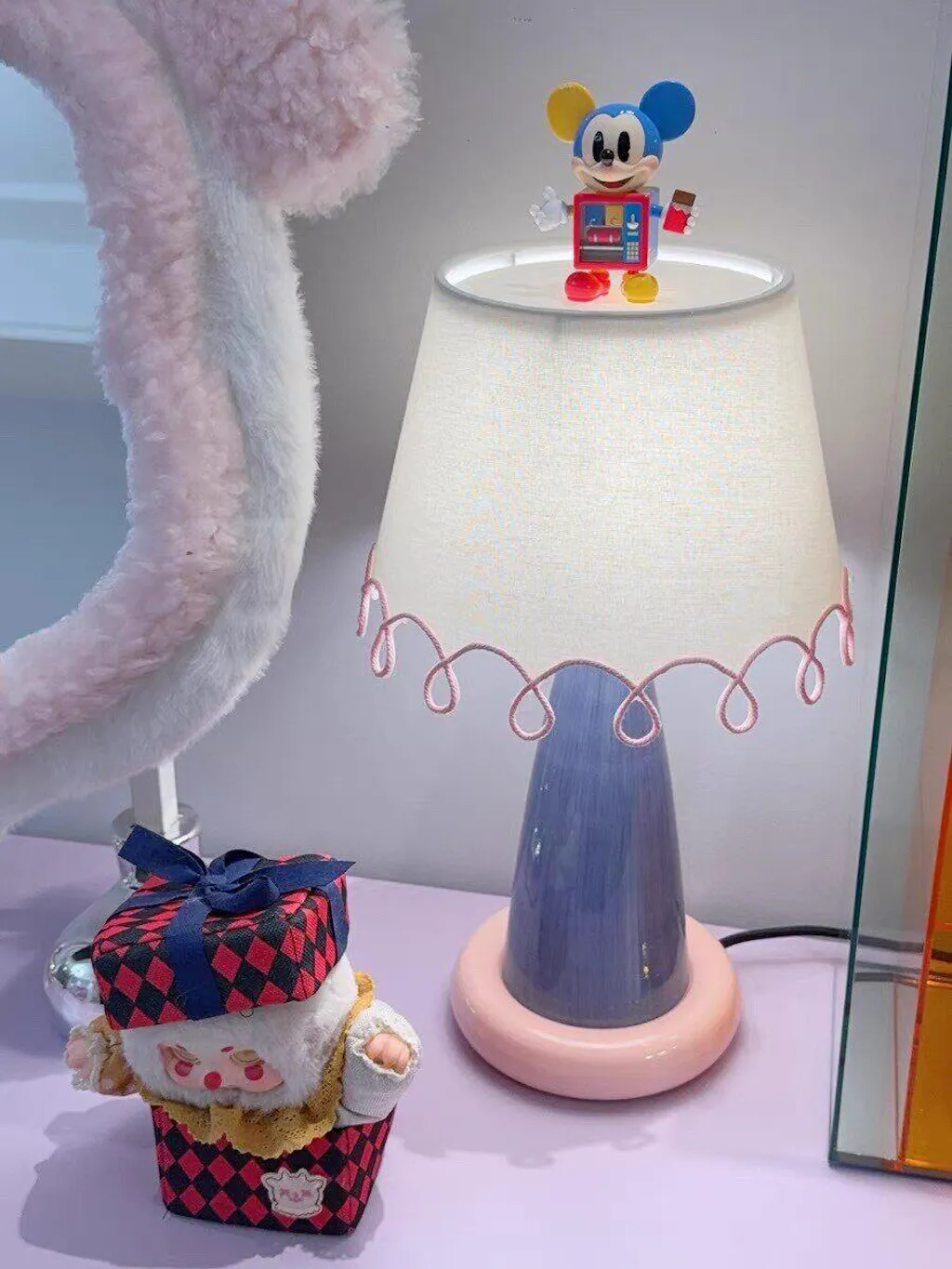 The Lollio Table Lamp captures a whimsical charm with its playful silhouette and candy-like colors. Featuring a glossy, conical base paired with a rounded support and a fabric shade adorned with pink loop trim, it evokes a sense of joyful nostalgia. Whether placed on a nightstand, dresser, or in a child’s room, Lollio adds a sweet pop of character and a gentle, warm glow that’s as inviting as it is distinctive.
