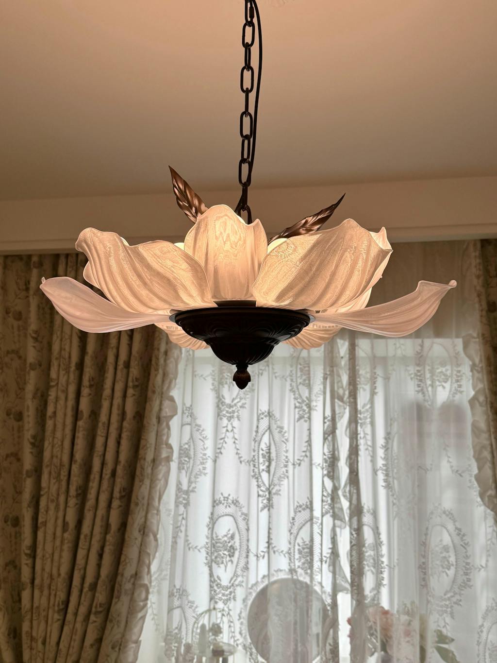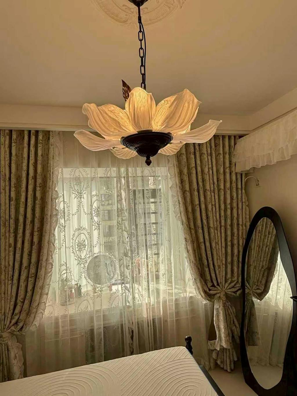 The Magnolia Bloom Chandelier captures the delicate poetry of nature in full bloom. Each petal-shaped Acrylic shade unfurls with soft luminosity, echoing the gentle grace of magnolia blossoms at dawn. The sculpted bronze leaves and stem add a touch of organic elegance, blending craftsmanship with natural artistry. More than a light fixture, it’s a centerpiece that brings warmth, romance, and timeless beauty into any space.