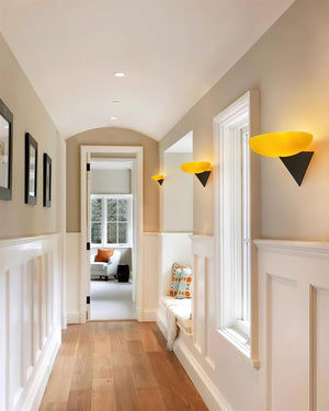 The Novi Wall Lamp is a bold study in geometric contrast and sculptural elegance. Featuring a striking interplay between a matte black triangular base and a warm yellow half-sphere diffuser, it feels both modernist and playful. The design balances sharp angles with soft curves, transforming light into an abstract composition on your wall. Whether styled solo or in multiples, Novi adds an artistic edge to entryways, hallways, or contemporary living spaces—perfect for those who see lighting as both function and form.
