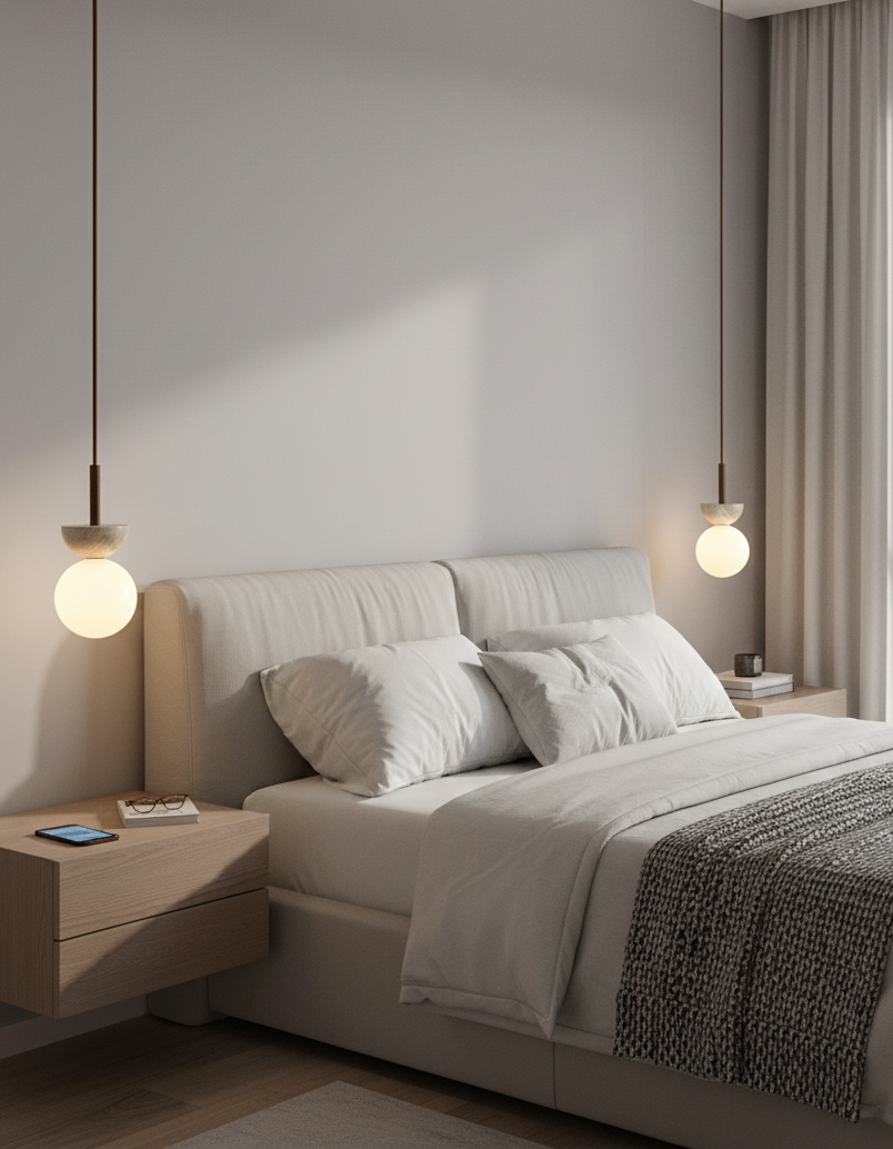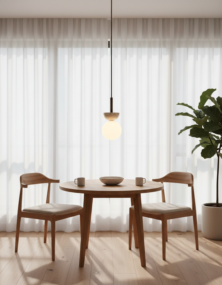 The Orbis Pendant Lamp blends minimalist geometry with natural texture, creating a design that feels both modern and organic. A warm stone element supports the soft, opal glass globe, casting a gentle and inviting glow. Whether displayed on its own or arranged in a series, it adds a refined yet understated artistic presence, turning light itself into a statement within your space.