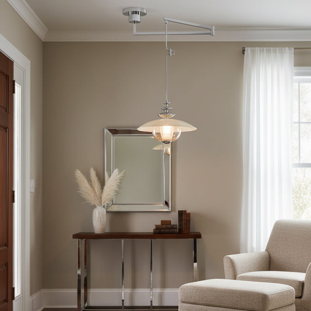 👉 Example: The Bracket Swing Arm Pendant Lamp combines an adjustable arm with a hammered acrylic shade, offering both directional control and a soft, textured glow—ideal for kitchens or workspaces.