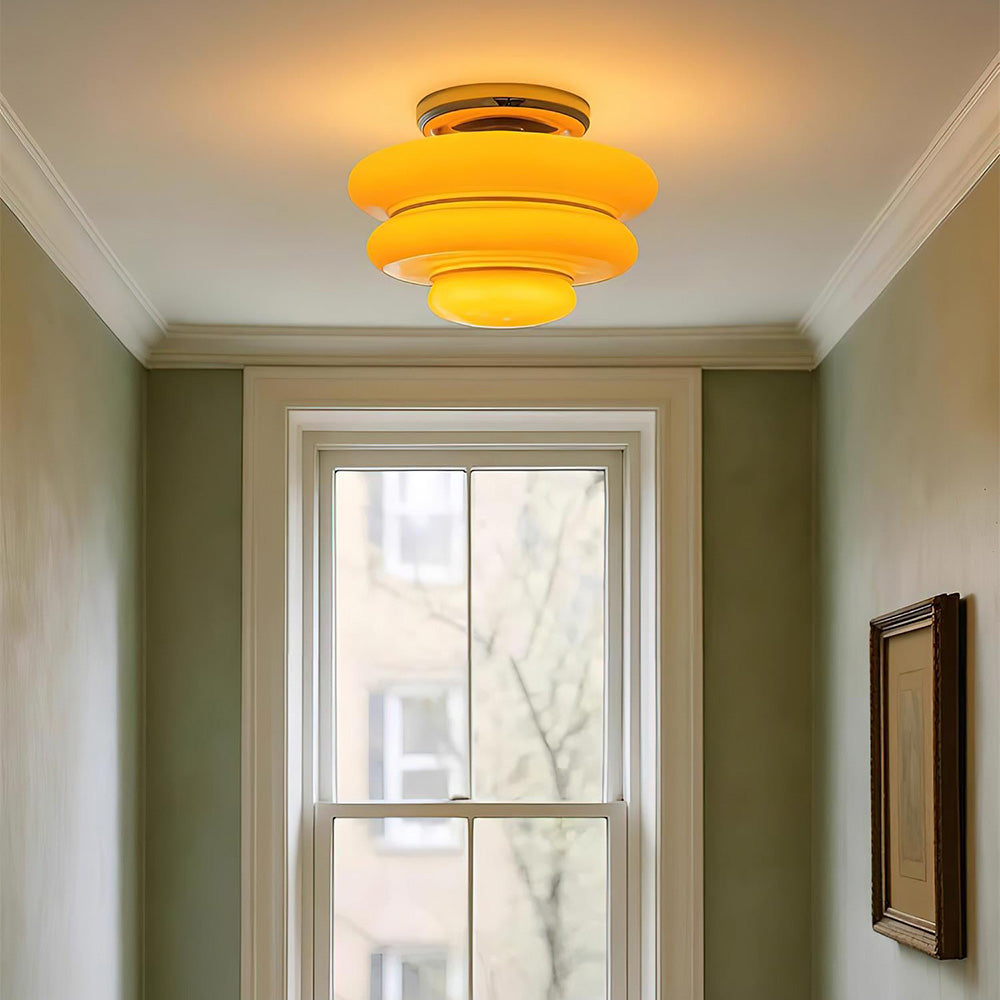 The Honeylite Ceiling Lamp is instantly recognizable for its stacked, honeycomb-like rings. Its glossy glass design diffuses light softly, creating a halo effect that enlivens dining rooms, kitchens, or entryways.