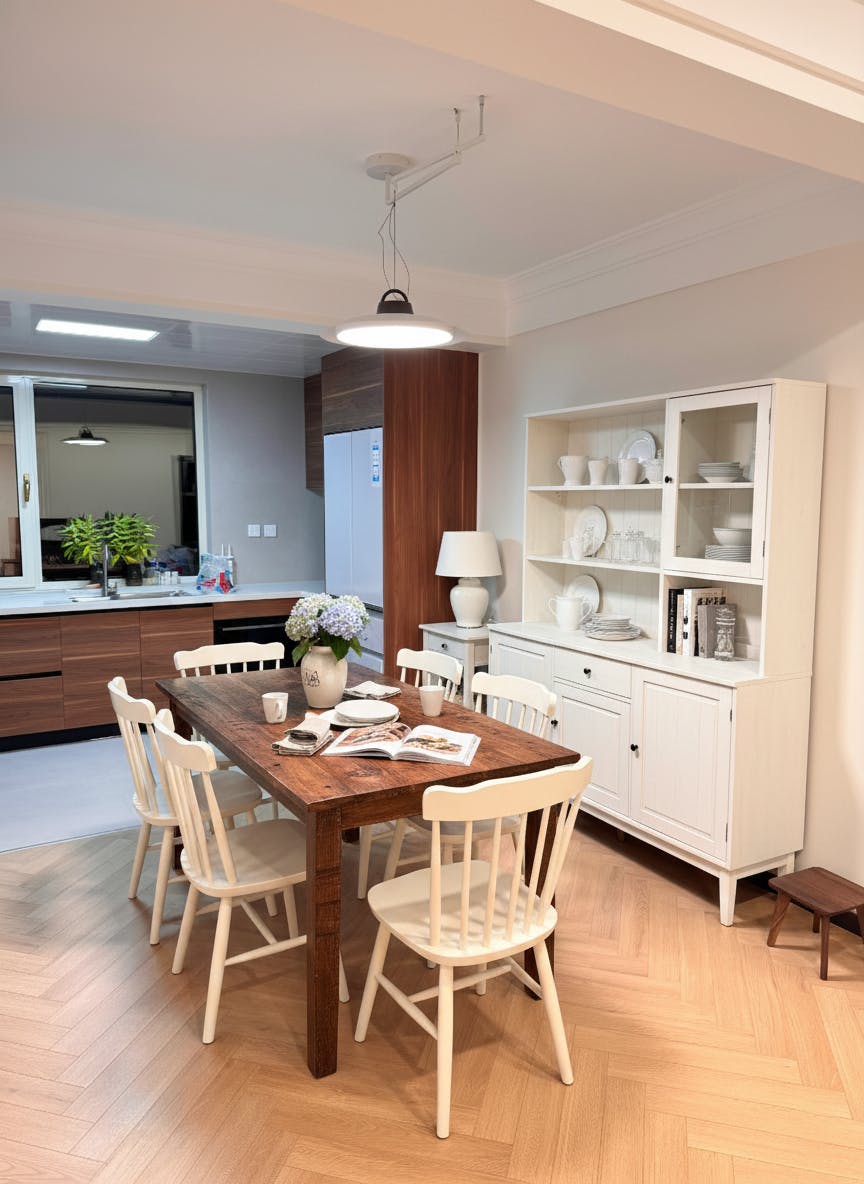 The Morvia Swing Arm Pendant Lamp blends sleek geometry with natural accents, offering a design that is both refined and versatile. Its wide, angled shade paired with a warm Water transfer printing wooden detail creates a striking contrast, while the adjustable swing arm ensures practical adaptability for varied spaces. Perfect above a dining table, reading nook, or modern workspace, this lamp balances functionality with sculptural elegance, making it a statement piece that enhances any interior.