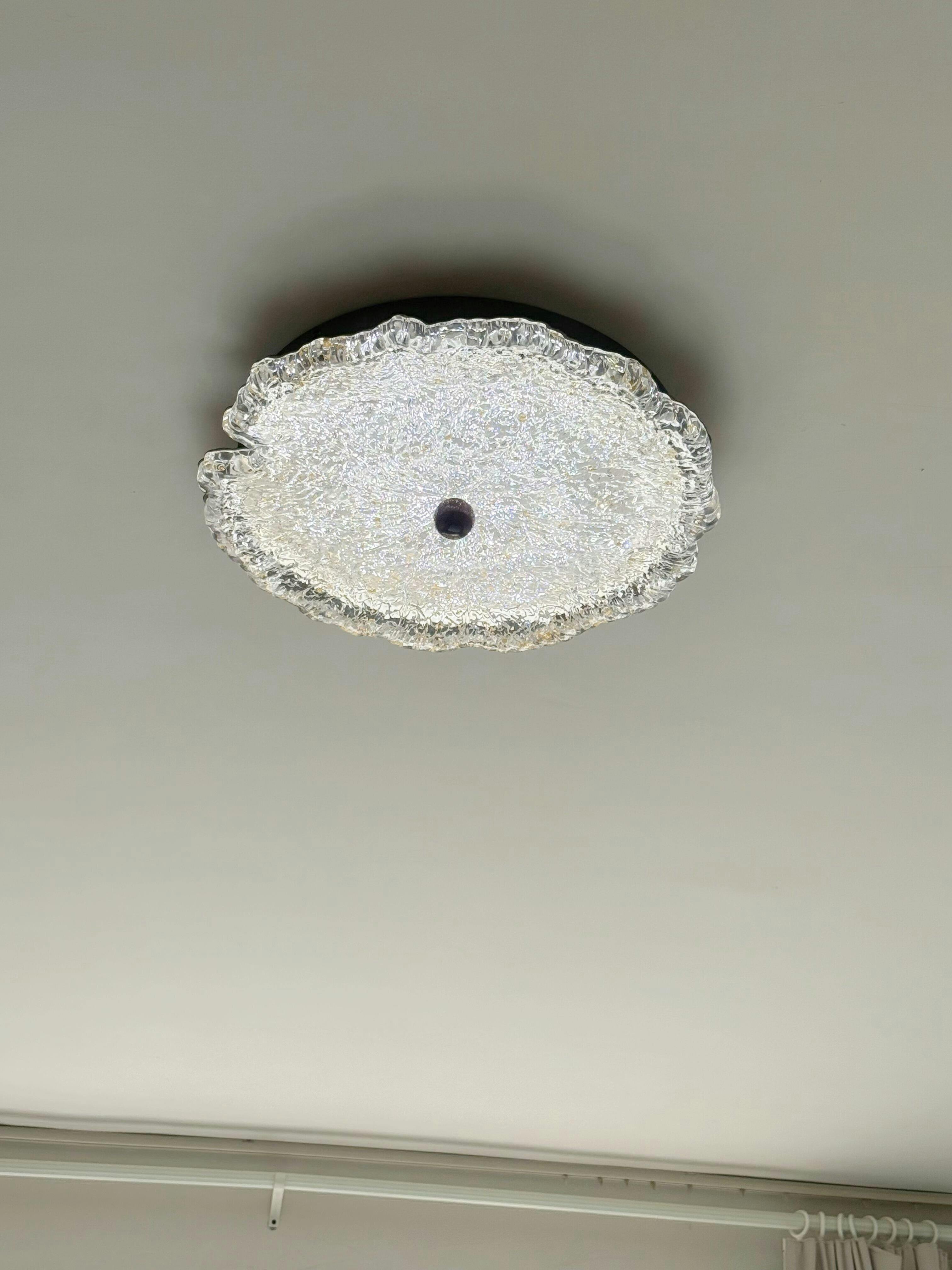 The Neuby Ceiling Light captures the delicate drama of molten glass frozen in time. Its textured, translucent surface radiates with luminous elegance, edged like glacial ice and centered with a rich, amber-toned orb—a subtle nod to vintage charm within a modern form.When lit, it casts a warm, celestial glow, transforming ceilings into sculptural statements. Both organic and refined, this piece is ideal for those who appreciate lighting as art.