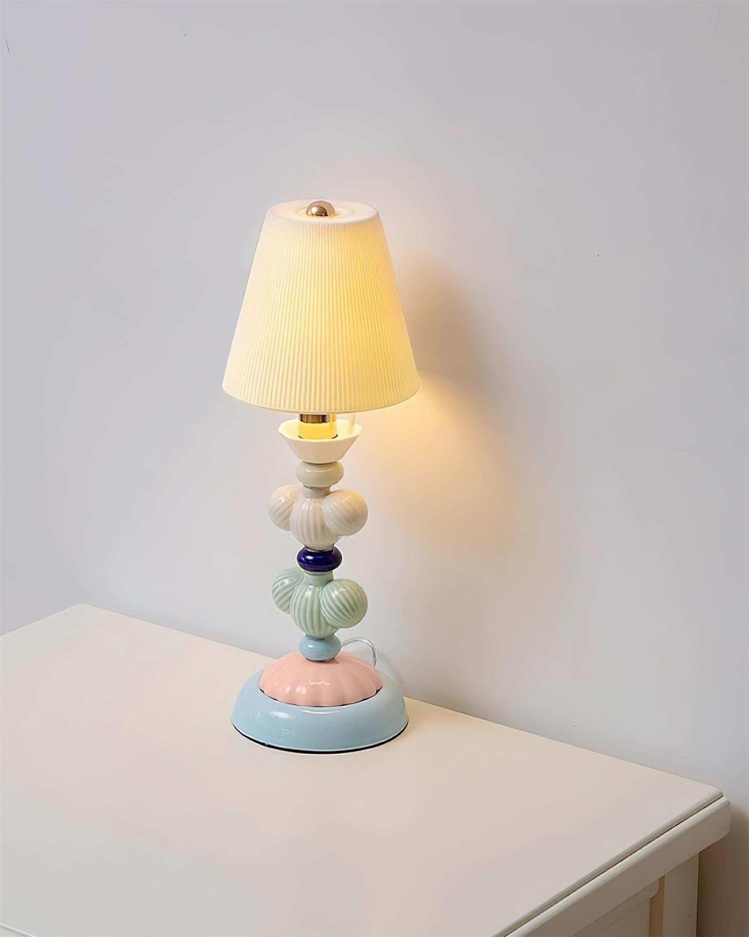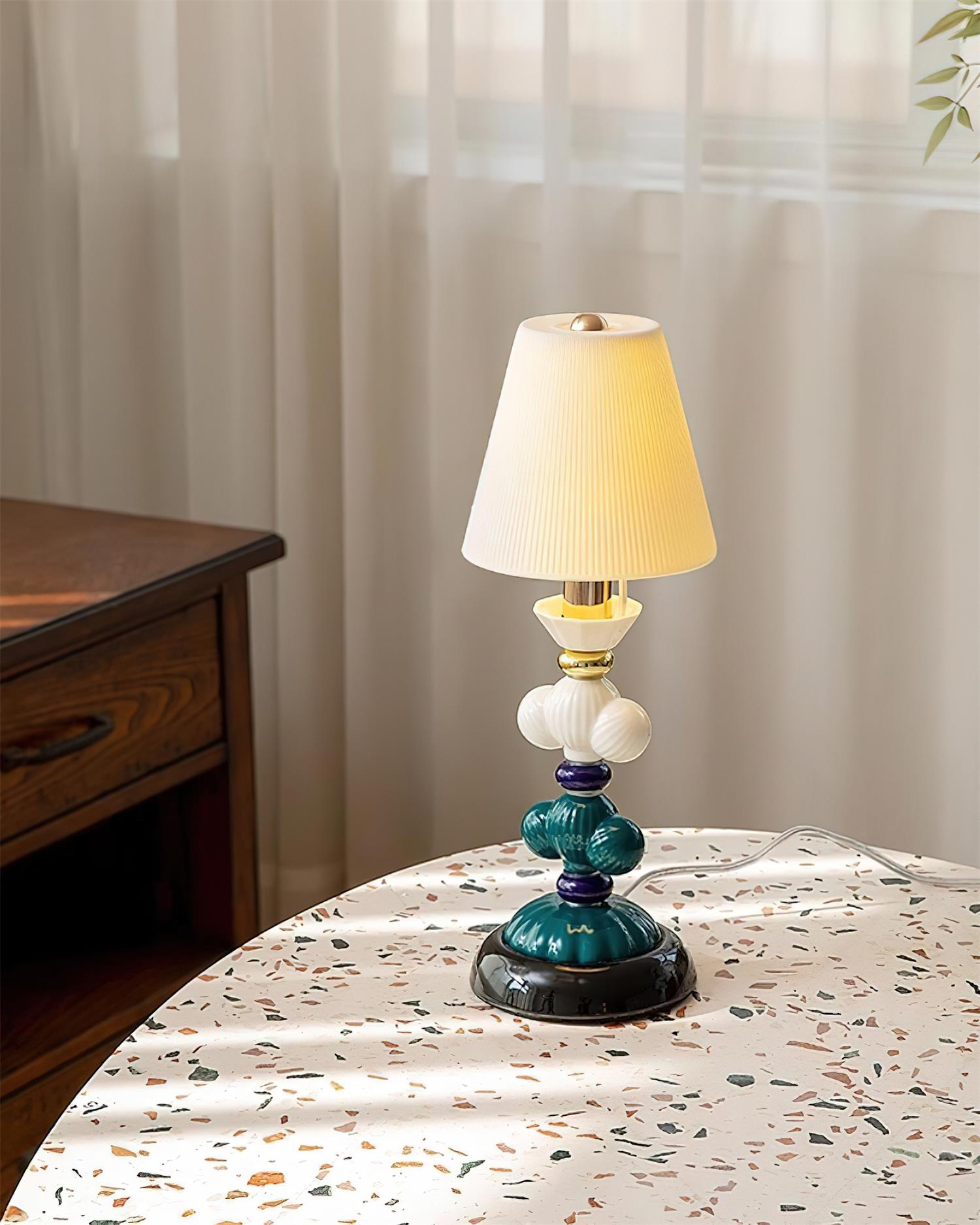The Blumelo Table Lamp is a visual poem of a coastal summer. Its ceramic base, featuring hand-painted blue and white stripes, evokes the clear skies and gentle waves of the Mediterranean with a playful elegance. The soul of the design is the handcrafted blue felt flower on the lampshade, a whimsical touch that adds unique artistic texture and a sense of warmth.