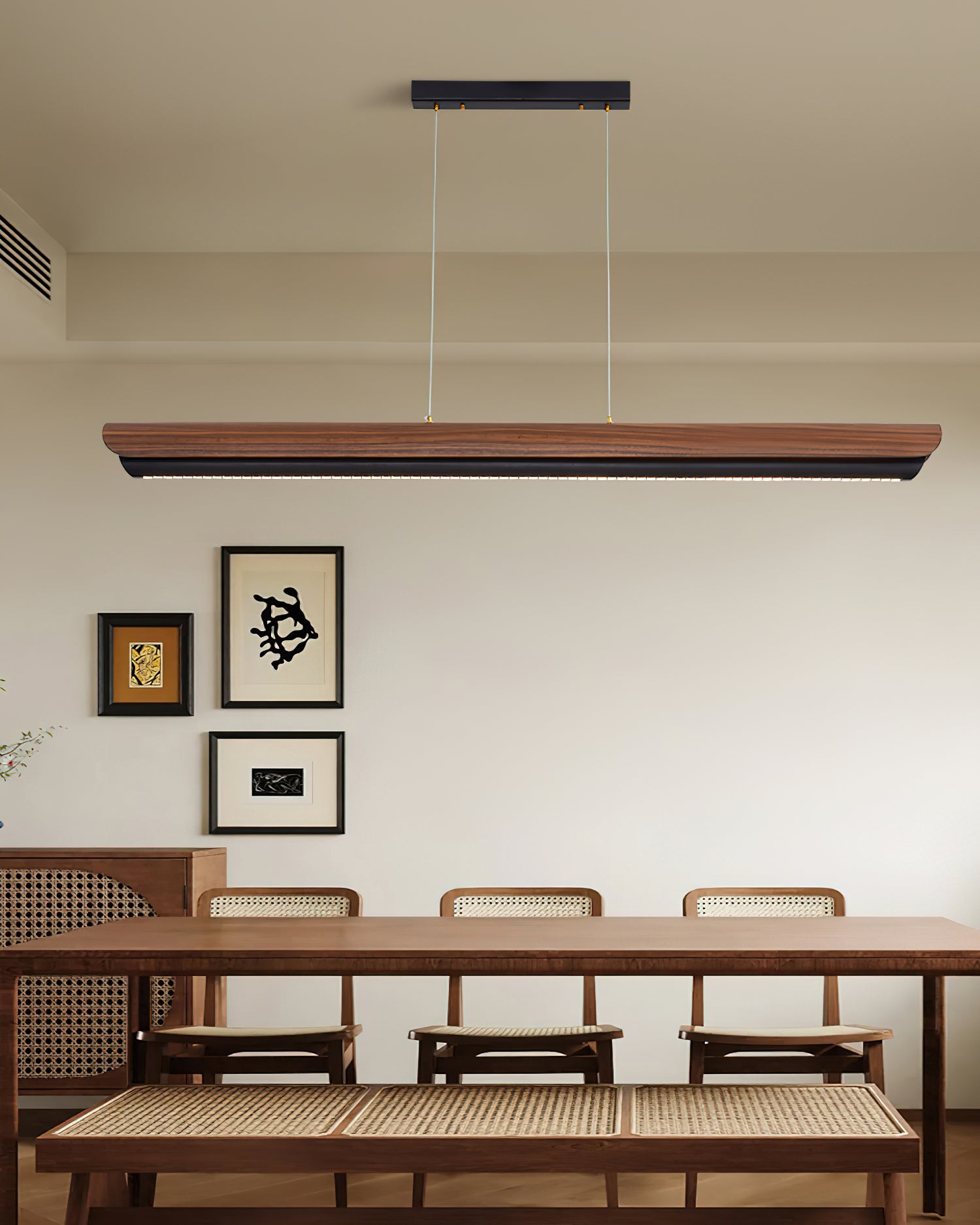 The Zenith Beam Chandelier embodies refined minimalism with a striking architectural presence. Its elongated wooden profile, paired with a sleek suspended design, creates a perfect balance between warmth and precision. The linear form casts an even, focused illumination—ideal for dining tables, workspaces, or contemporary living areas—while its understated elegance allows it to blend seamlessly into both modern and timeless interiors.