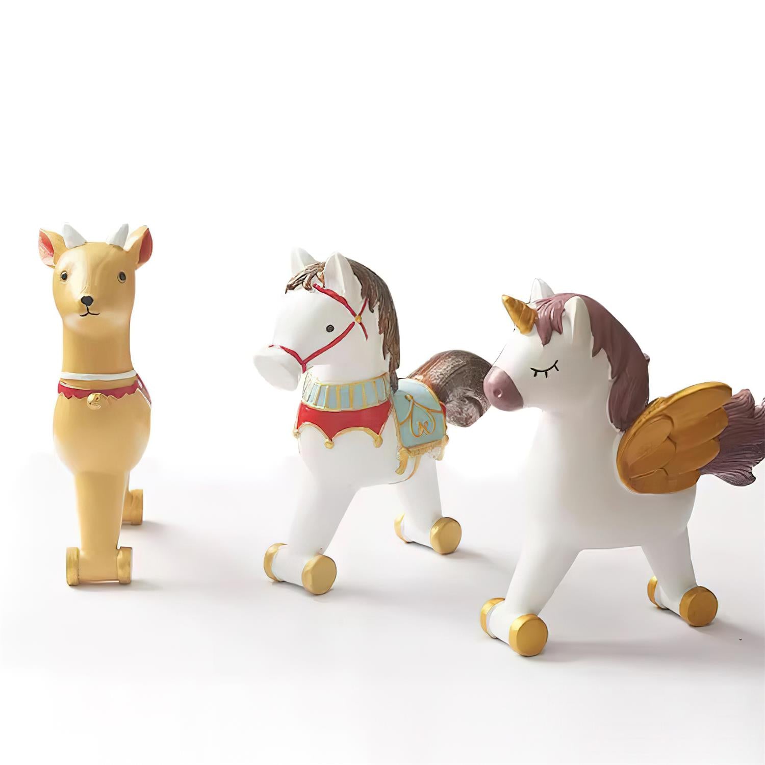 Step into a storybook fantasy with the Circudia Chandelier — a whimsical celebration of childhood wonder and carousel dreams. Crafted with exquisite attention to detail, this charming chandelier features delightful miniature horses, deer, or winged unicorns gracefully posed beneath vibrantly striped or softly pleated lampshades. Each piece evokes the joy of a carnival ride frozen in time, suspended on graceful curves and adorned with playful, candy-colored accents.